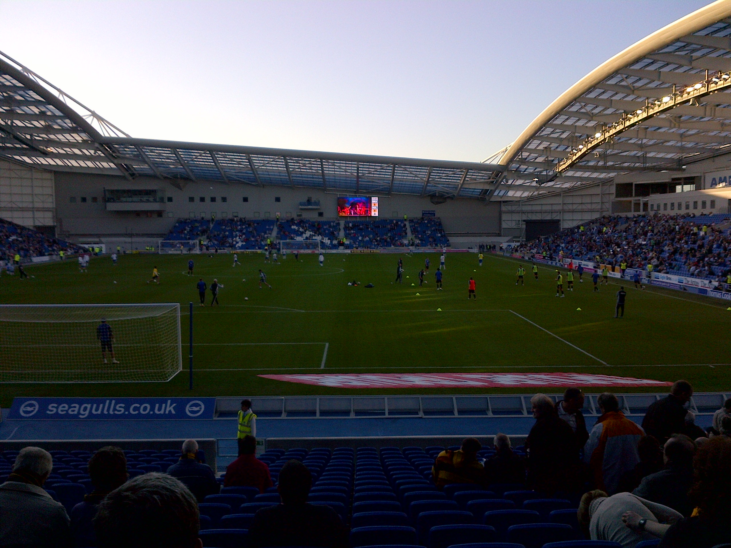 The experience was great. The Amex is modern and confortable (the seats are actually padded). But more importantly, witnessing a match demonstrates in my mind just how futile and silly is the game. Mostly I consume football on the radio or on big screens in pubs and bars. There, commentators and summarisers take it all so seriously. One forgets that it is really only 22 men kicking a ball around for 90 minutes. It is a hoot of a game. A great afternoon out. Would recommend.