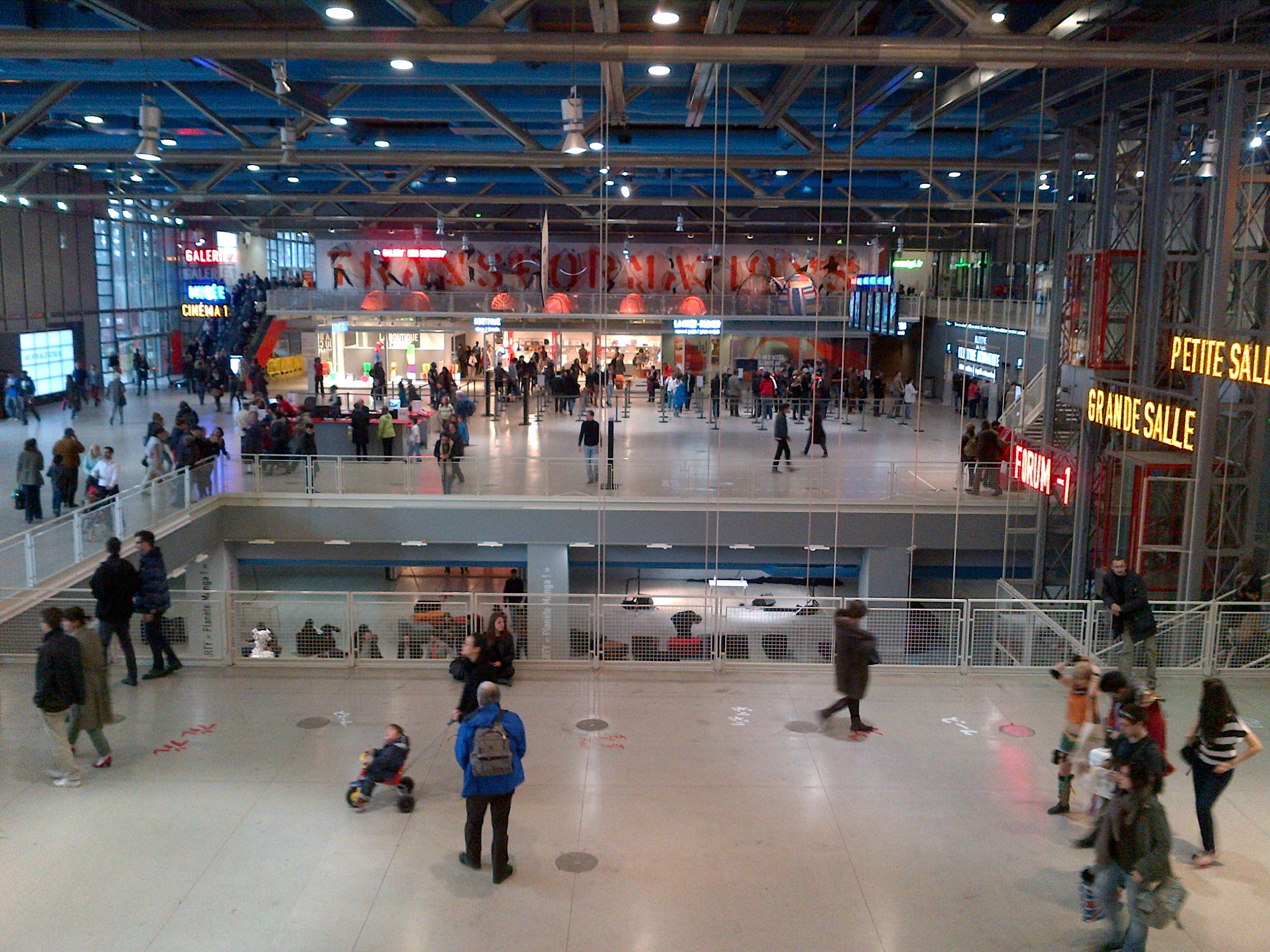 The Pompidou Centre contrasts very nicely with the Louvre. It is brash, loud, bright with a somewhat different clientele. It is open later – on Saturday’s the gallery at the top (where until next month the Matisse paintings can be found) is open until 2300). We managed only to get to the 3rd floor which houses the permanent painting collection up to the mid-1970s. There one finds a wealth of Picasso, Ernst, Miro, Kandinsky and even Pollock.It is vast, with each theme explored in small versatile cubicles. There are lots of little alleys each displaying surprises and examples of the moving image from the period, too. Statues adorn the many terraces (unfortunately so do the smokers).