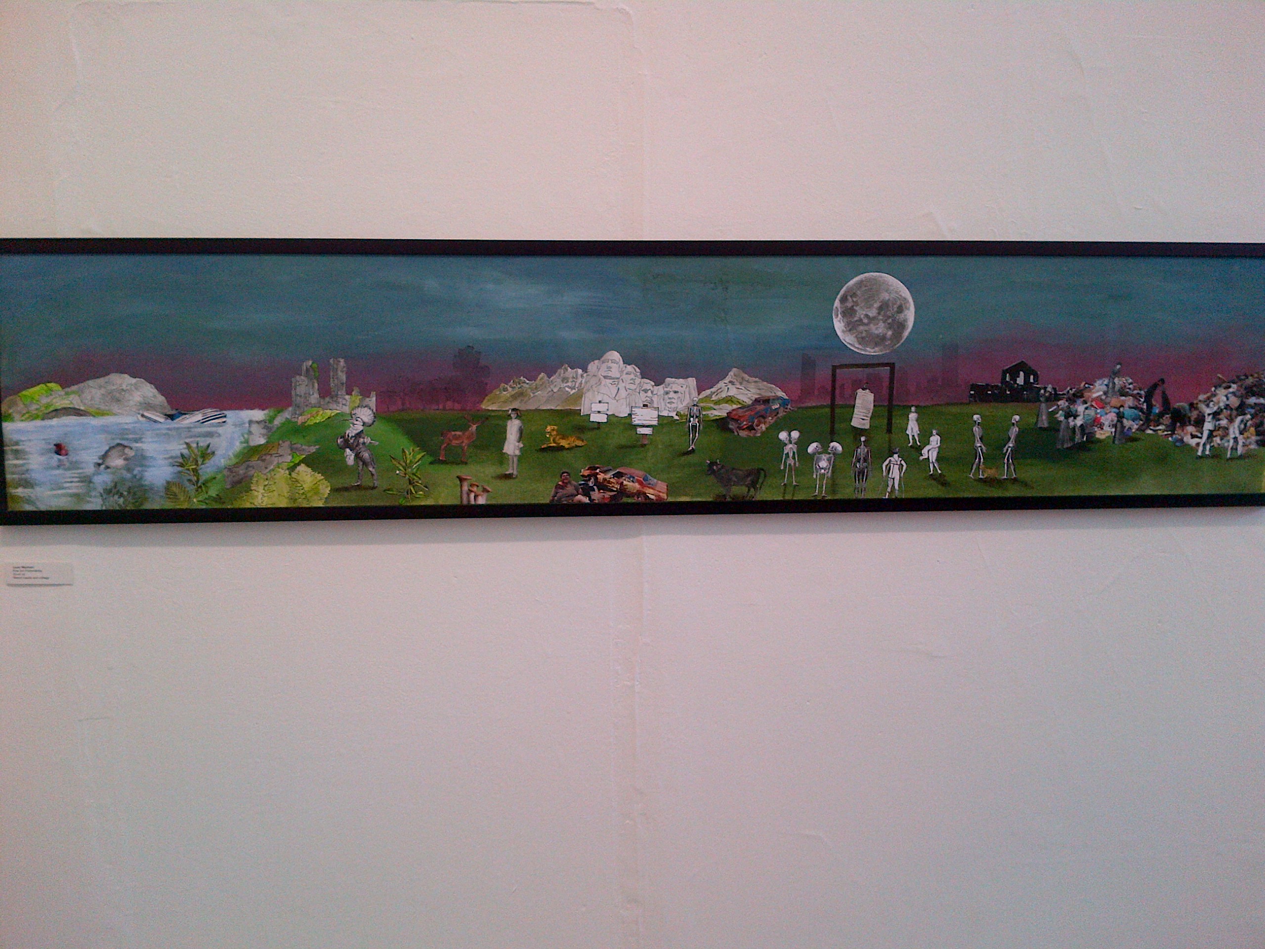 Next on the wow! list is a collage by Lucy Mazhari. Mazhari is a fine art printmaker. This one goes under the undistinguished title of Scroll #2. The cinemascope presentation gives it a voyeuristic quality