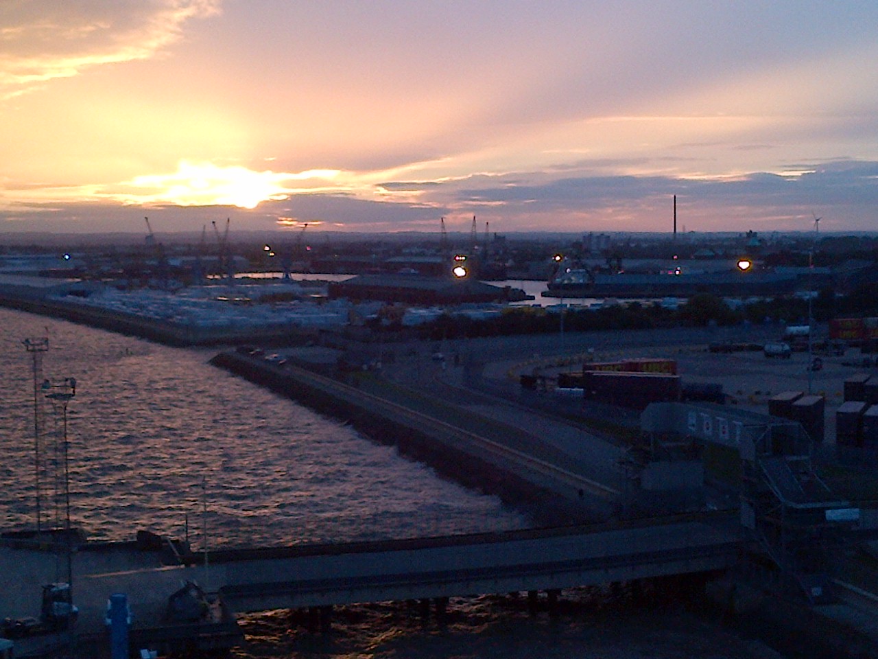I lived for 23 consecutive years in Hull – born and bred. But never did I take the ferry to Rotterdam or Zebrugge. Many times I watched them leave. So, on on Friday 17 August 2012 we boarded the ferry to Rotterdam to make good that failure. This is the view of the City from the Ferry (left). And here we are on the deck at departure time (right).