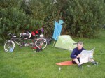 | Leimuiden, NL | The campsite is 2km south of Leimuiden. It is a working dairy farm. Delightful, though basic. Everyone was very friendly, including the owner who waved at us from his tractor whilst we were drinking some generously donated beer before taking a modest 10 Euros from us. The cheapest campsite we visited. It is close to Schipol Airport, however, so there is a bit of noise. Other than that, a must if you are in the area. |