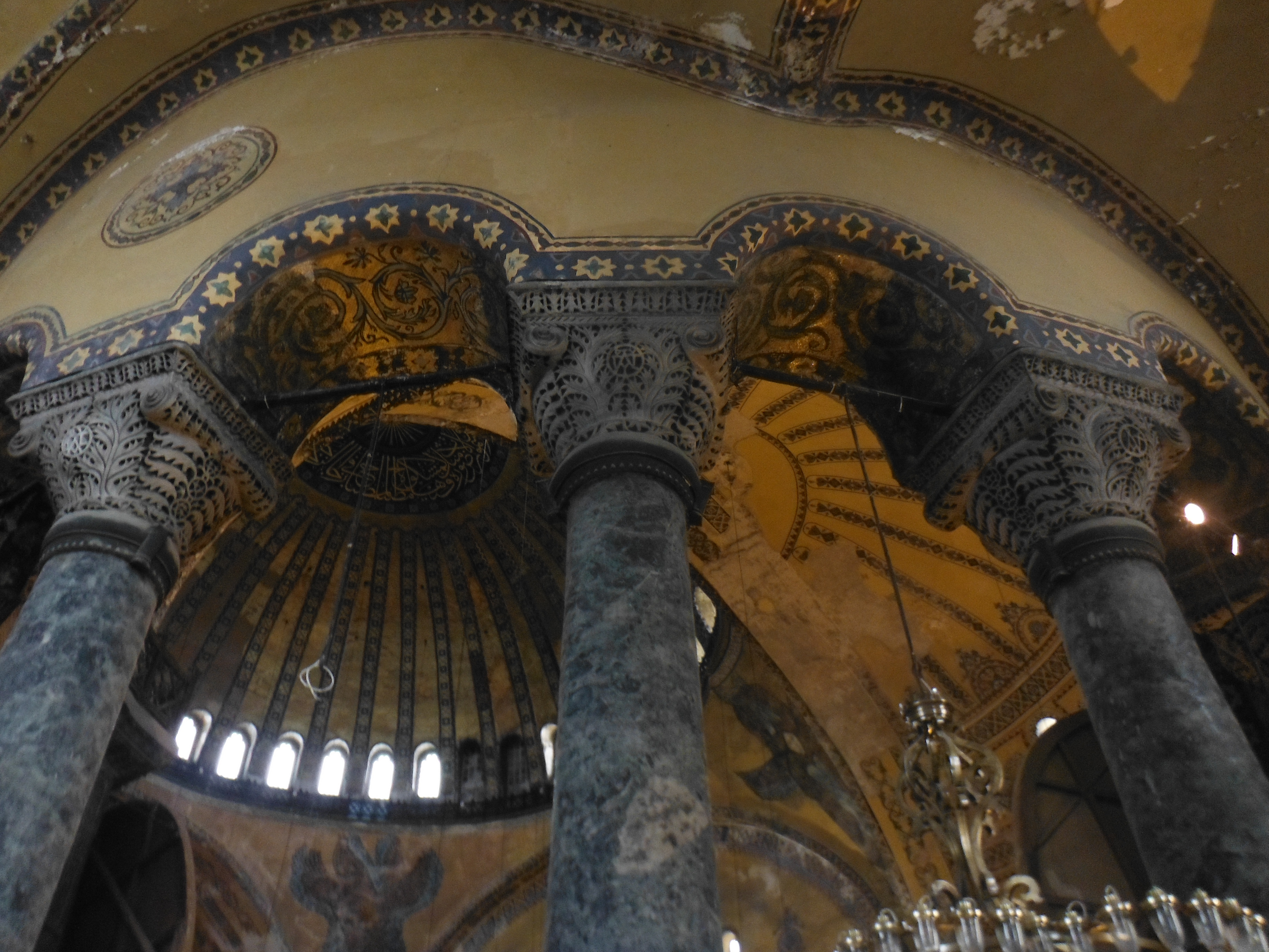 is not the best time to visit as it is a naturally dark and cool space. But the scale is incomprehensible and the remnants of the mosaics stunning. There are two levels for visitors – ground level where one finds the alter, and a mezanine where one finds the mosaics coupled with an elevated panorama. The mosaic on the right – the Virgin receiving a model of the new church from Justinianus and the city from Constantine (10th Century).