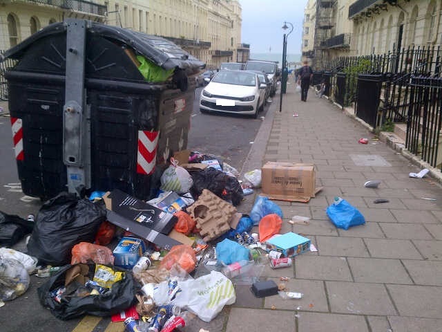The GMB union, which represents the refuse workers, reports the origins of the strike thus: “The dispute began in January when the Council’s Green Party leader, Jason Kitcat, gave full authority to its £150,000 Chief Executive, Penny Thompson, to negotiate and implement a revised pay and allowances package without any recourse to councillors. This led to a final offer being made in April, which included cuts of up to £4,000 a head from some of the council’s lowest paid employees.” (See more at: http://union-news.co.uk/2013/06/brightons-bin-men-begin-week-long-strike/#sthash.2YLfD9oB.dpuf).