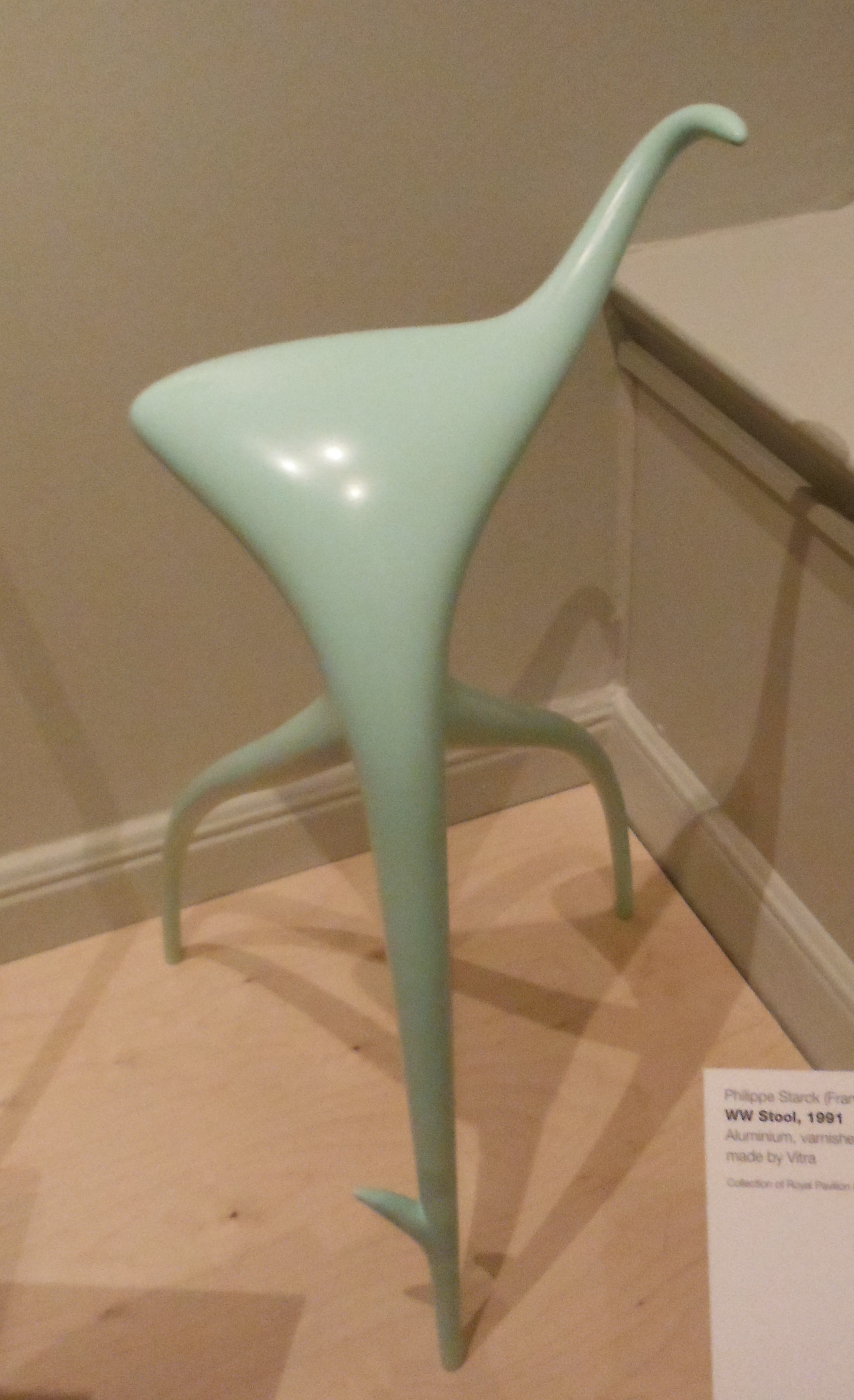 Also featuring in the exhibition is some work by enfant terrible, Philippe Starck. Two pieces are on display, both of which are part of the museum’s permanent collection. The stool (below left) was designed originally for film director, Wim Wenders, who wanted a stool on which he could lean rather than sit.