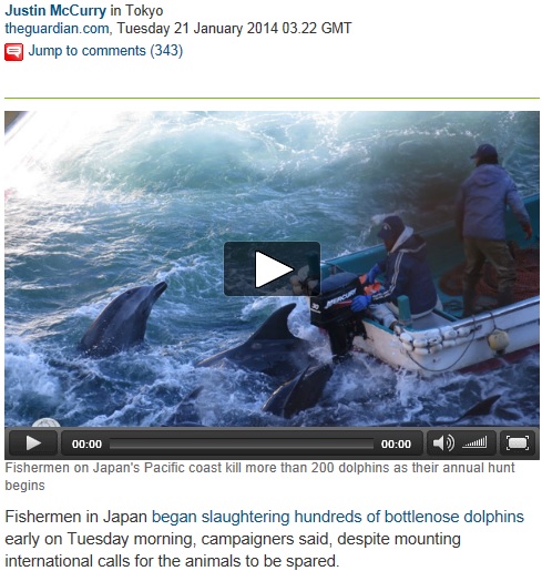 Picture: The Guardian – http://www.theguardian.com/world/2014/jan/21/japanese-fishermen-begin-annual-slaughter-of-hundreds-of-dolphins