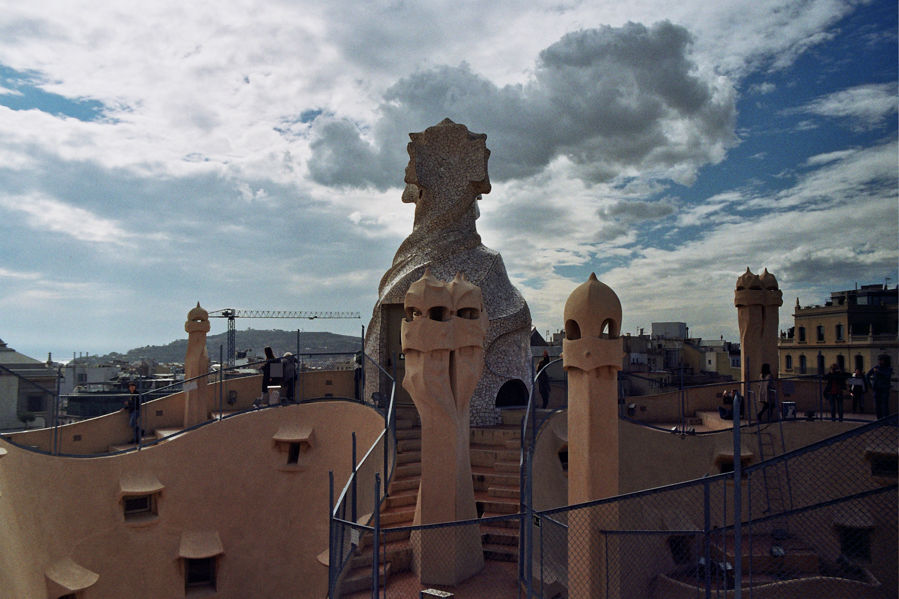 On arrival, visitors are sent immediately to the roof. This is an extraordinary space. The view across the city is a good enough reason to go; however, Gaudi saw chimneys and ventilation shafts as opportunities to introduce sculpture to his architectural creations. The roof then becomes an exclusive sculpture park. Andrew Graham-Dixon posited that it was curious that this celibate, frugal man (who was also a vegetarian, we discovered) should adorn his roof with sculptures of phallic and other sexual forms (below left). One could argue that it is difficult to make chimneys anything other than phallic. Surely? Whatever they represent, this is a roof like no other.