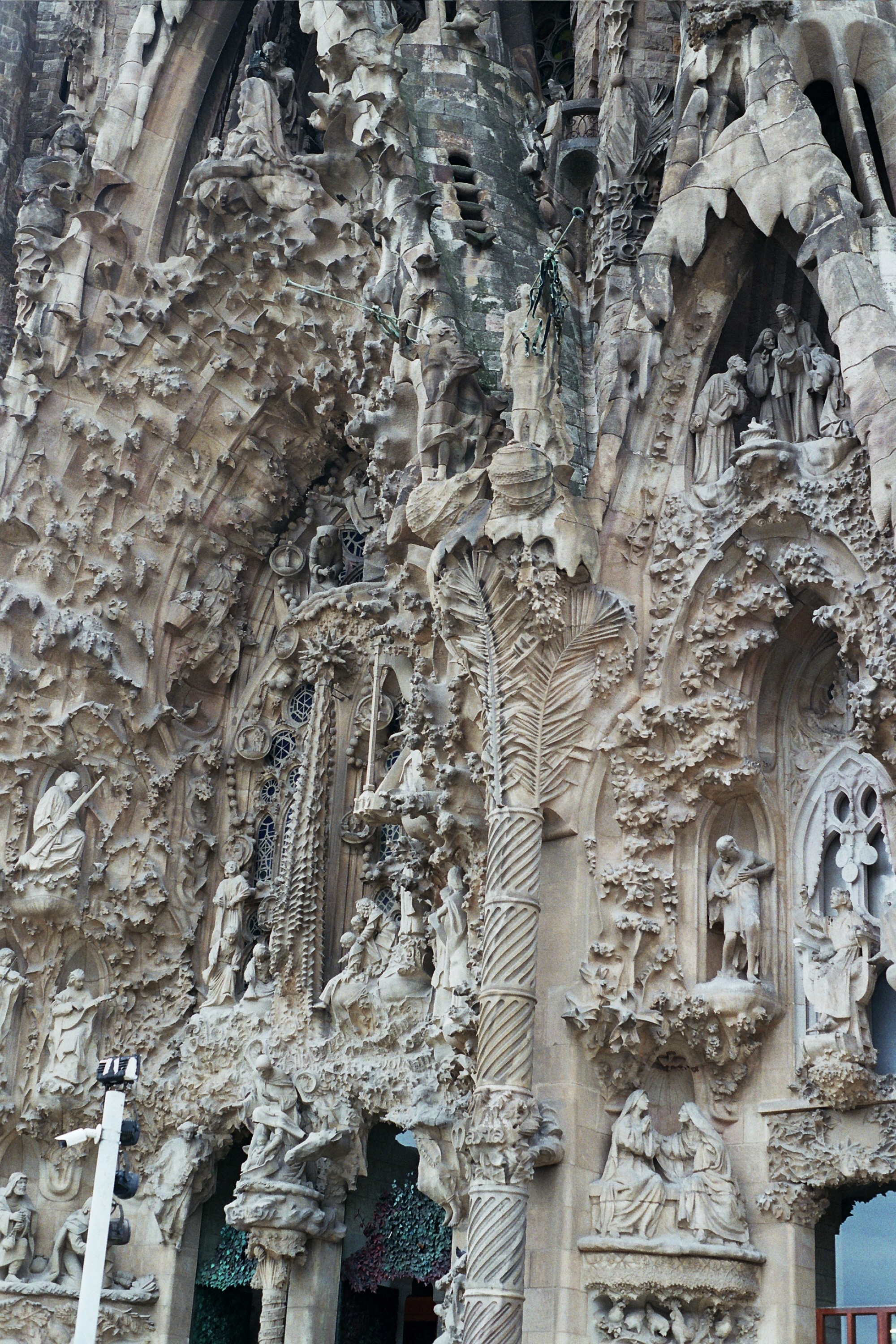 We planned a little ahead on the advice of friends. So, to visit the Gaudi UNESCO sites, booking ahead online is advisable. The Cathedral, the Sagrada Família is quite the most extraordinary unfinished building I’ve ever seen. Adopted by Antoni Gaudi in 1883, it became his life’s work where he eventually lived (in his workshop) and died (being hit by a tram immediately outside). The Nativity façade has, what Douglas Adams’ character Slartibartfarst might have called, all of those fiddly bits. The classic icons of the life of Christ in fine gothic detail (left). It took 41 years to complete. The sculptor was a friend of Gaudi’s, Lorenc Matemala. He too, like Gaudi, died a decade before completion of the façade.