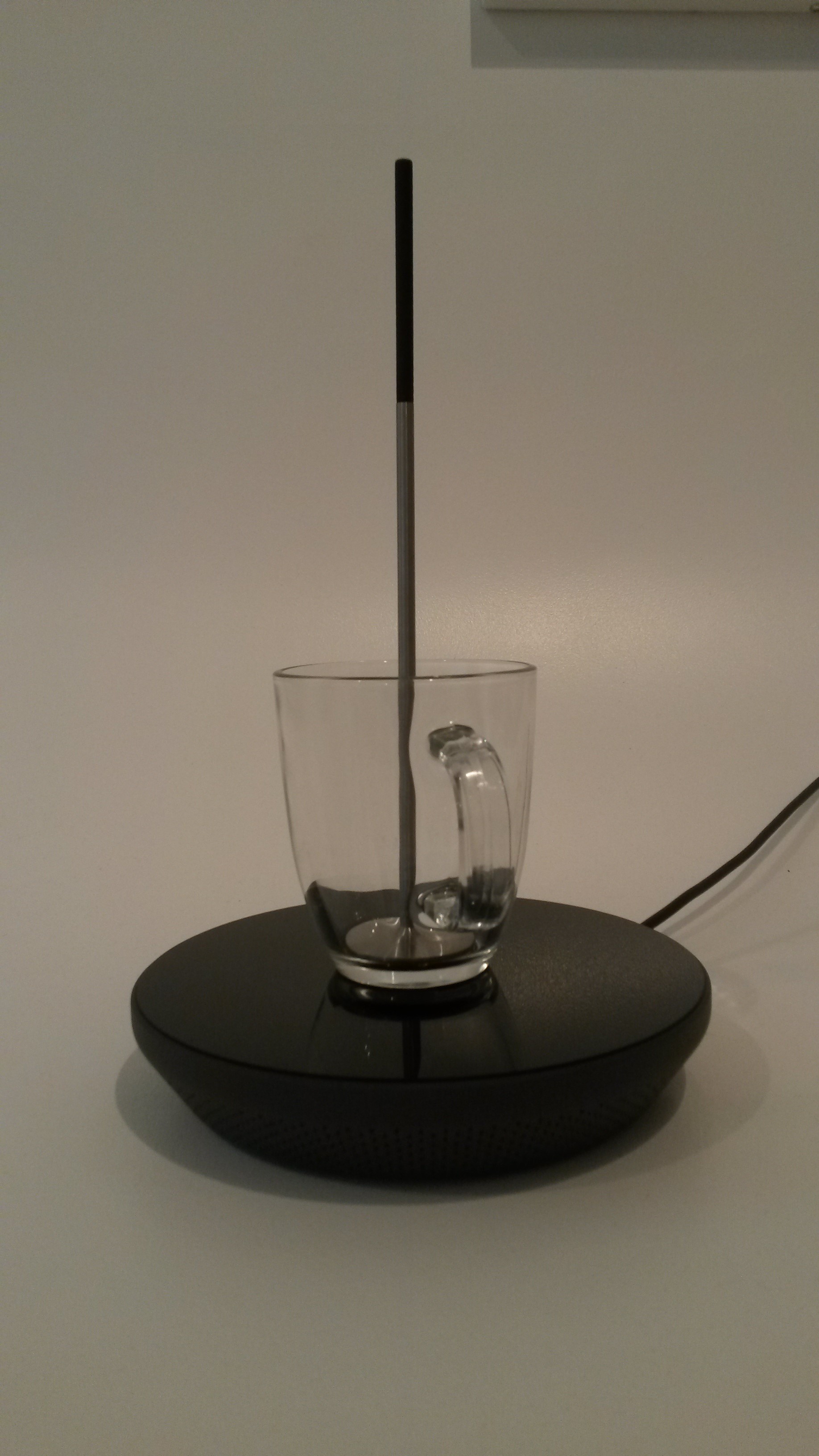 and waste energy in the process. This device, called Milto (right), is by Nils Chudy and Jasimina Grase which ‘re-imagines’ the kettle. This is a common ruse of designers, the ‘re-imagination’. It uses ‘induction technology’ similar to that employed in hobs on domestic cookers. The cup, teapot, or whatever is placed on the base and the rod inserted. It then heats the liquid and turns off when boiled. Extraordinary.