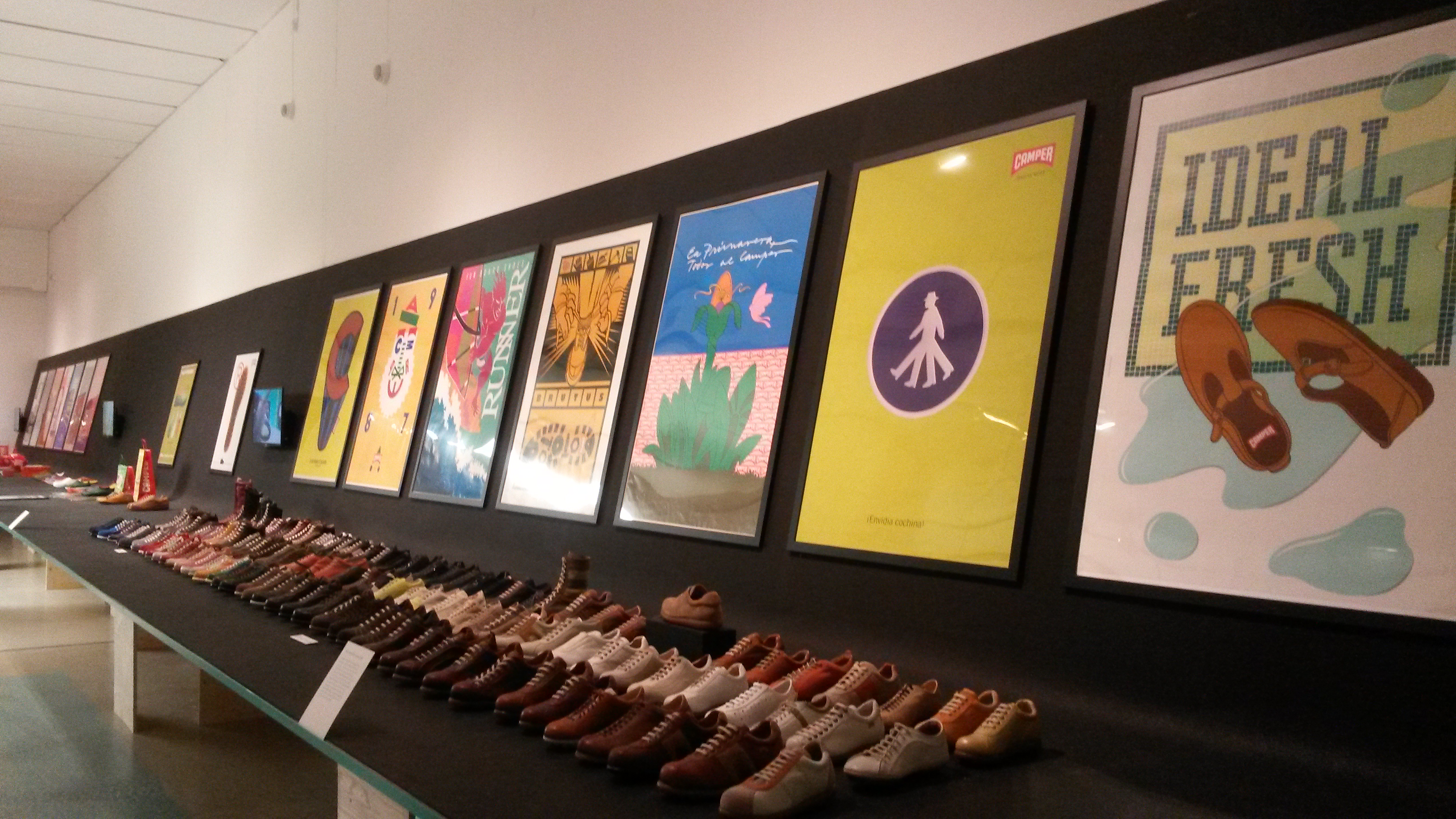 The exhibition itself does three things excellently. First, it shows the core artefact, the shoes. Second, the process of design and manufacture is explained, not just for Campers, but for shoes more generally, complete with tools and demonstrations using video screens.