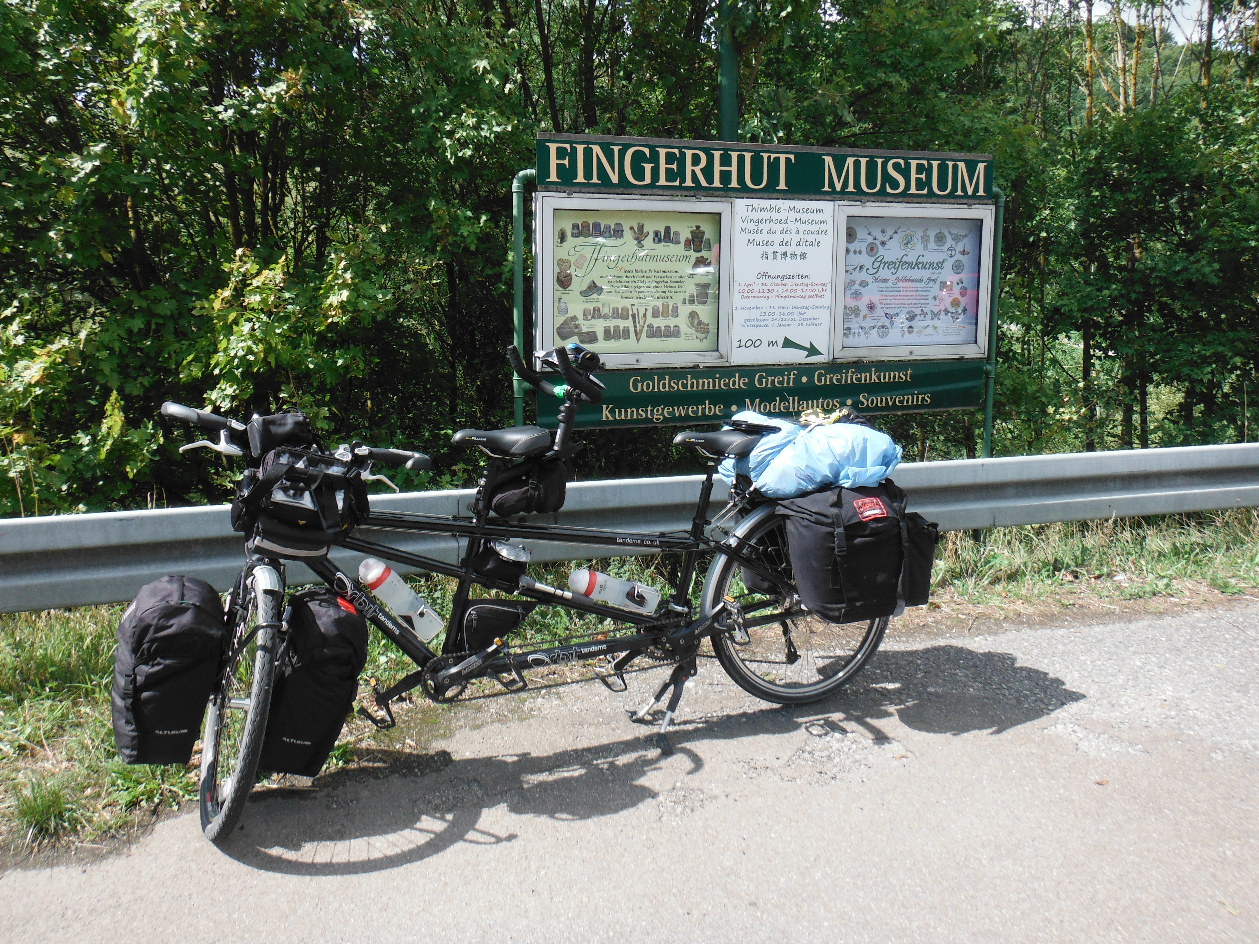 track as it steeply descends into the valley and the way back up is tortuous. The town is significant in its history and is home to an amazing Tilman Riemenscheider alterpiece carving – something we discovered only on getting back and watching again Andrew Graham Dixon’s BBC documentary, The Art of Germany (though if we had read our guide close enough, we would also have known). Indeed there are many Riemenschneider carvings in Bavaria. We stopped off at two further churches containing examples of his work at Detwang (where we camped and pictured, above right) and a shade futher on the Herrgottskirche to the south of Credlingen on the L1005 (and don’t forget the Thimble Museum, below left).