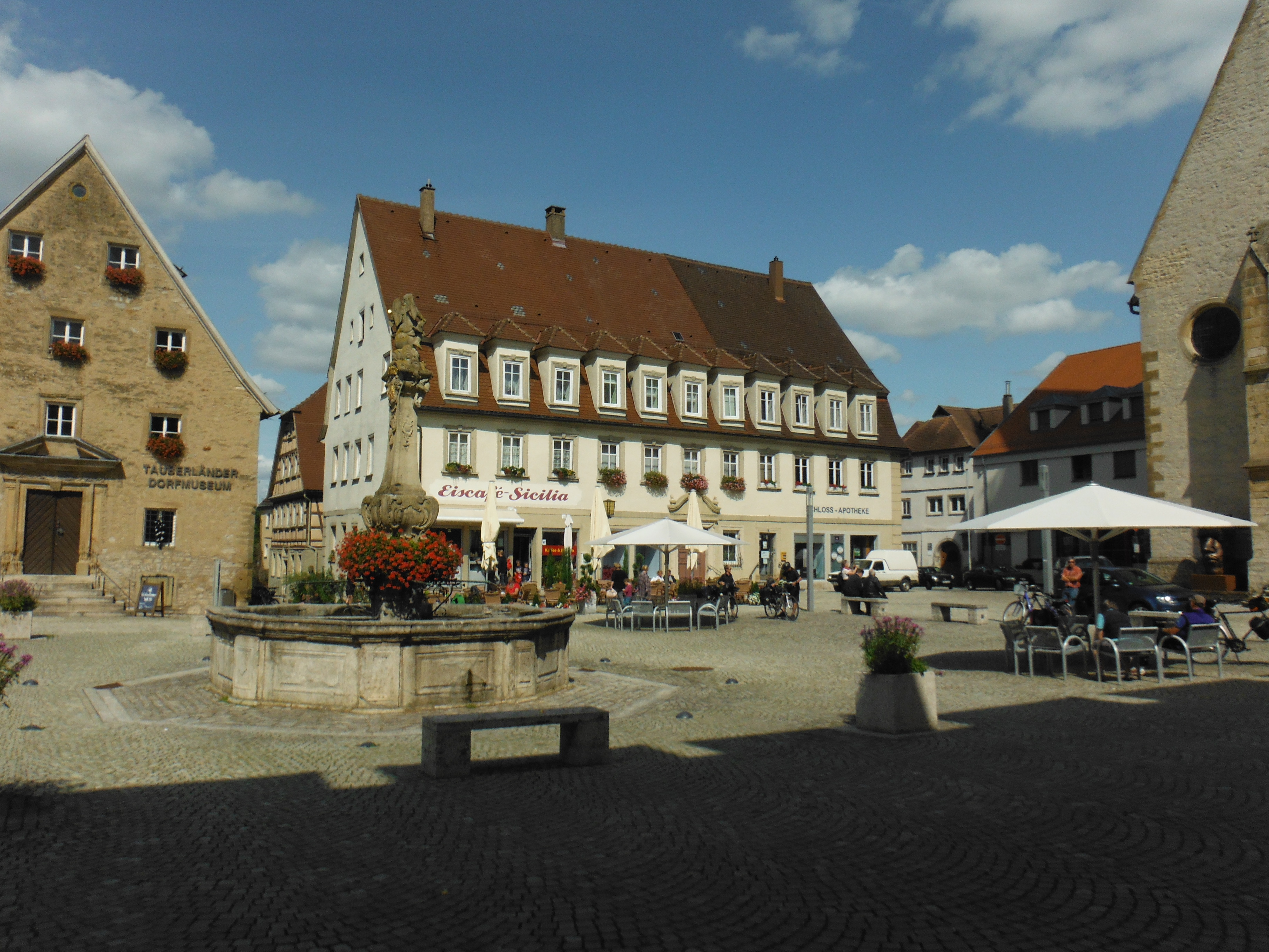 Onward towards our next stop, Tauberbishofsheim through the attractive towns of Röttingen, Weikersheim (right) and