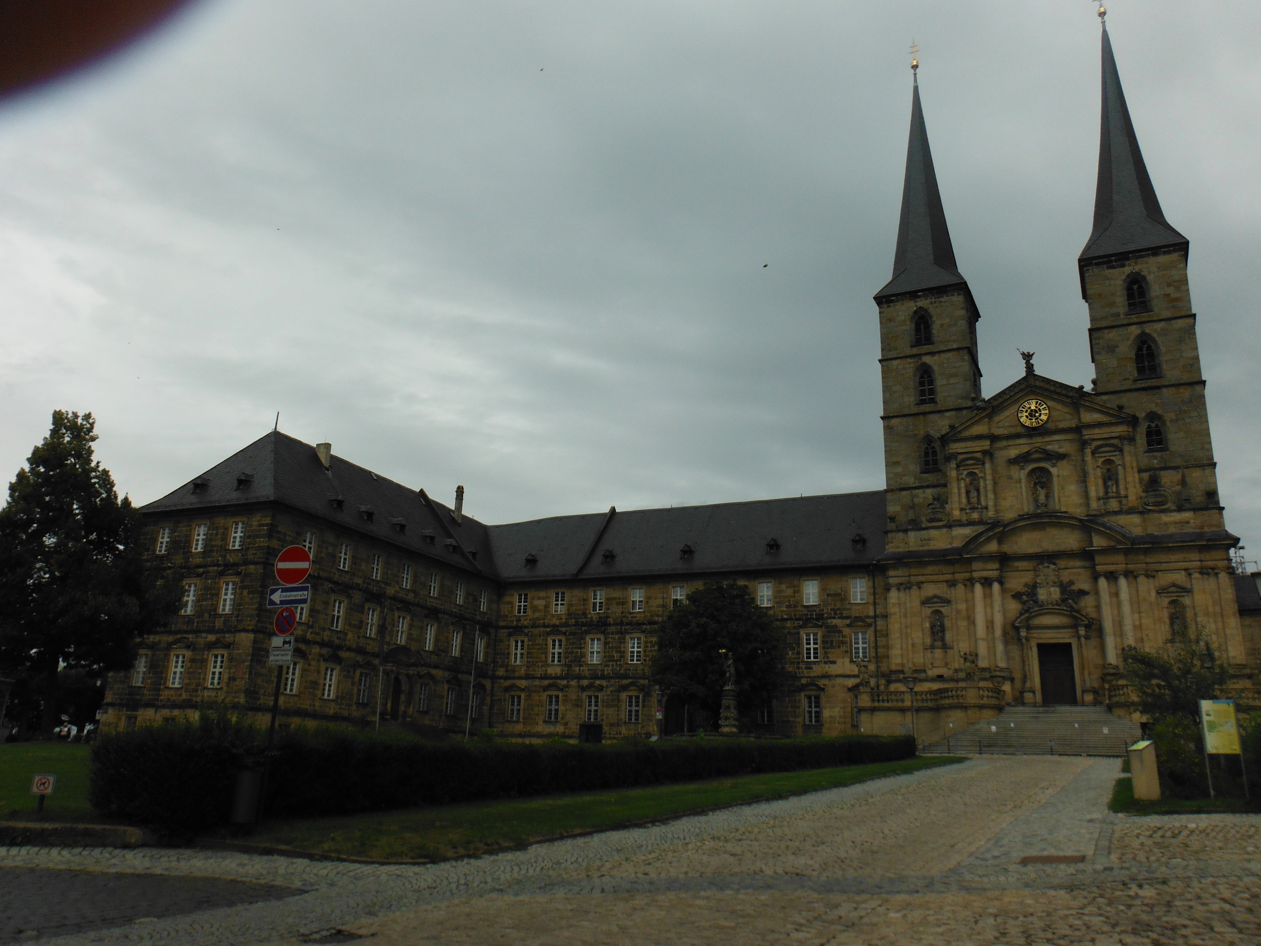 It is certainly a hilly place (there are 7 hills, die Hügel), thus enjoying the architecture requires some strenuous walking. The stone used for the buildings gives it an unwarranted industrial feel. The Cathedral (right) is, for example, built from a sandy-coloured stone, as is the nearby Michaelsberg Abbey (below right). The cathedral dates from the 13th Century and is described as romanesque (Bamberg is often described, inappropriately, as Bavaria’s Rome). As for the