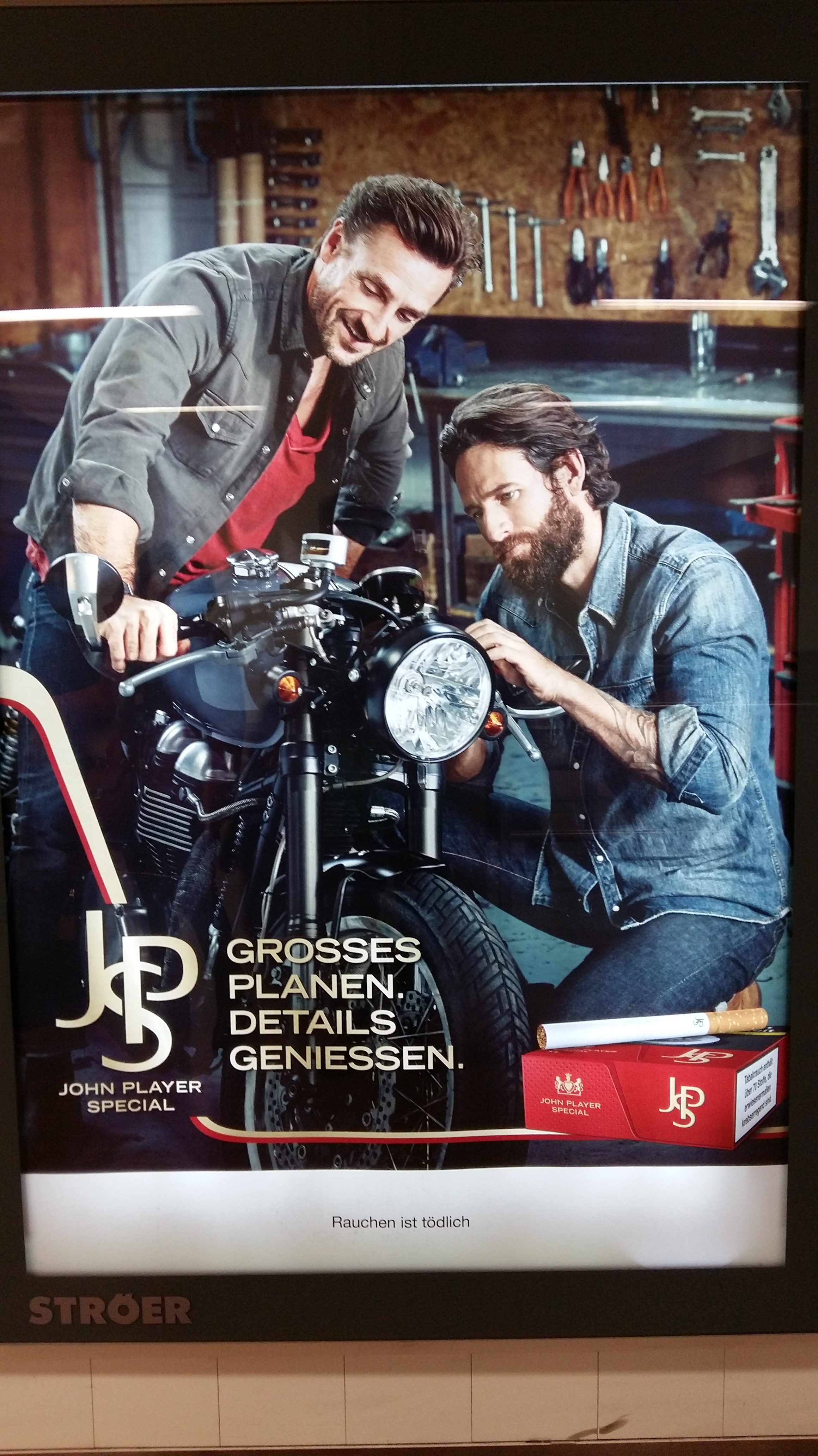 By goodness, the cigarette manufacturers do seem to like Hamburg as a city to market their lethal products. JPS (left), for example, occupies many of those smaller lit poster sites (bus shelters, etc.). What do we have here? Huge Plans. Enjoyable details. Presumably, let’s get that bolt sorted and we can go even faster on those infamous German autobahns. Better to die instantly now doing what we like rather than later with the inevitable chronic lung disease?