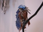 The next artefact to bowl me over was Teenie Connolly’s kingfisher. Made of reclaimed materials collected on walks between Brighton and Newhaven, they – and the complementary pots – represent the weaving undertaken by birds to make nests. She says that she has enjoyed a close relationship with birds in nursing a number back to health. Her underlying theme, however, is sustainability.
