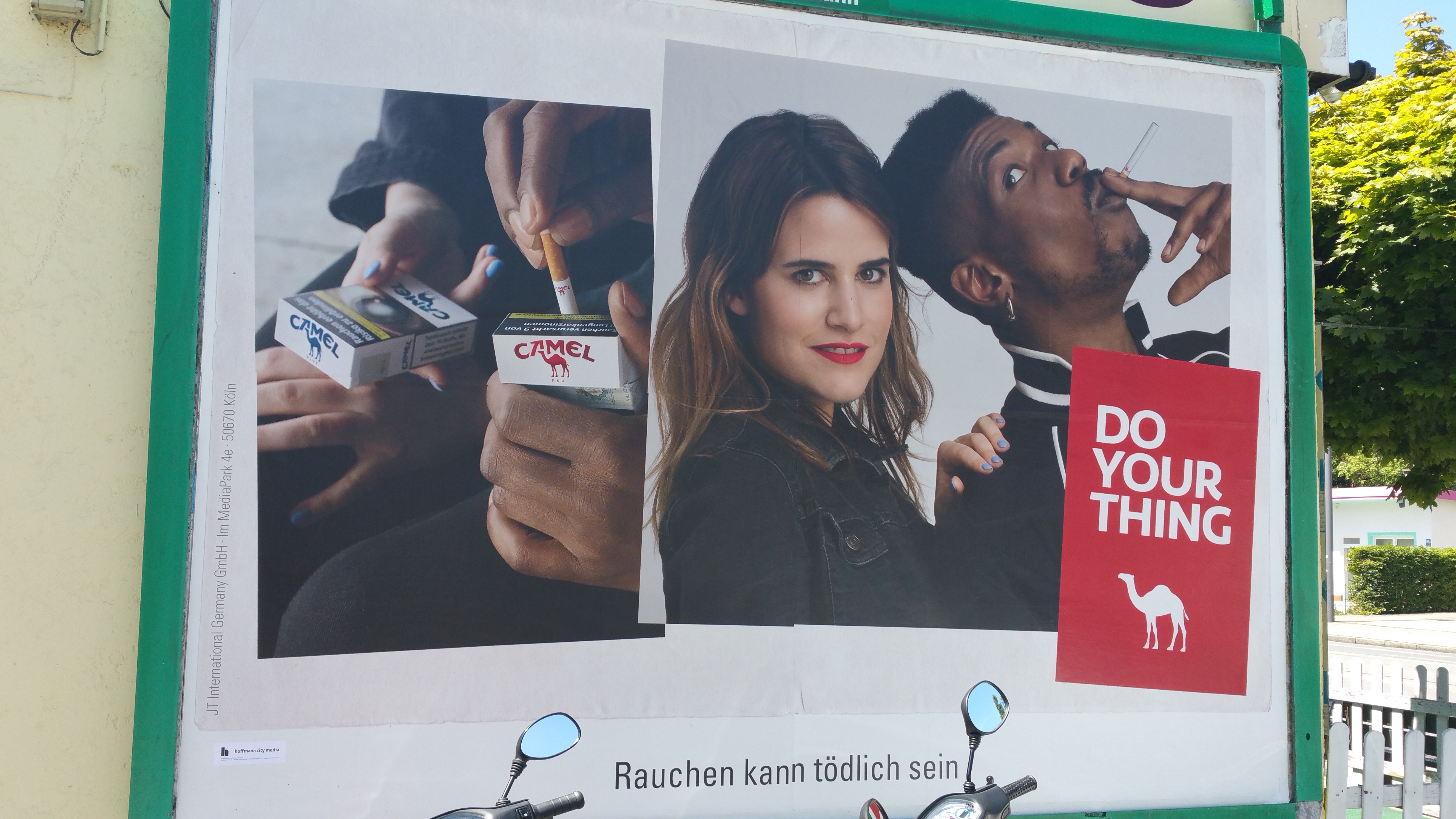 el’s Do Your Thing campaign reappeared last week in Munich with this gem. In the left panel a couple demonstrate two Camel packets, conveniently limiting exposure of the nasty death/chronic disease images that cigarette packets must legally display. On the right is the couple being tossers. That’s about it really.