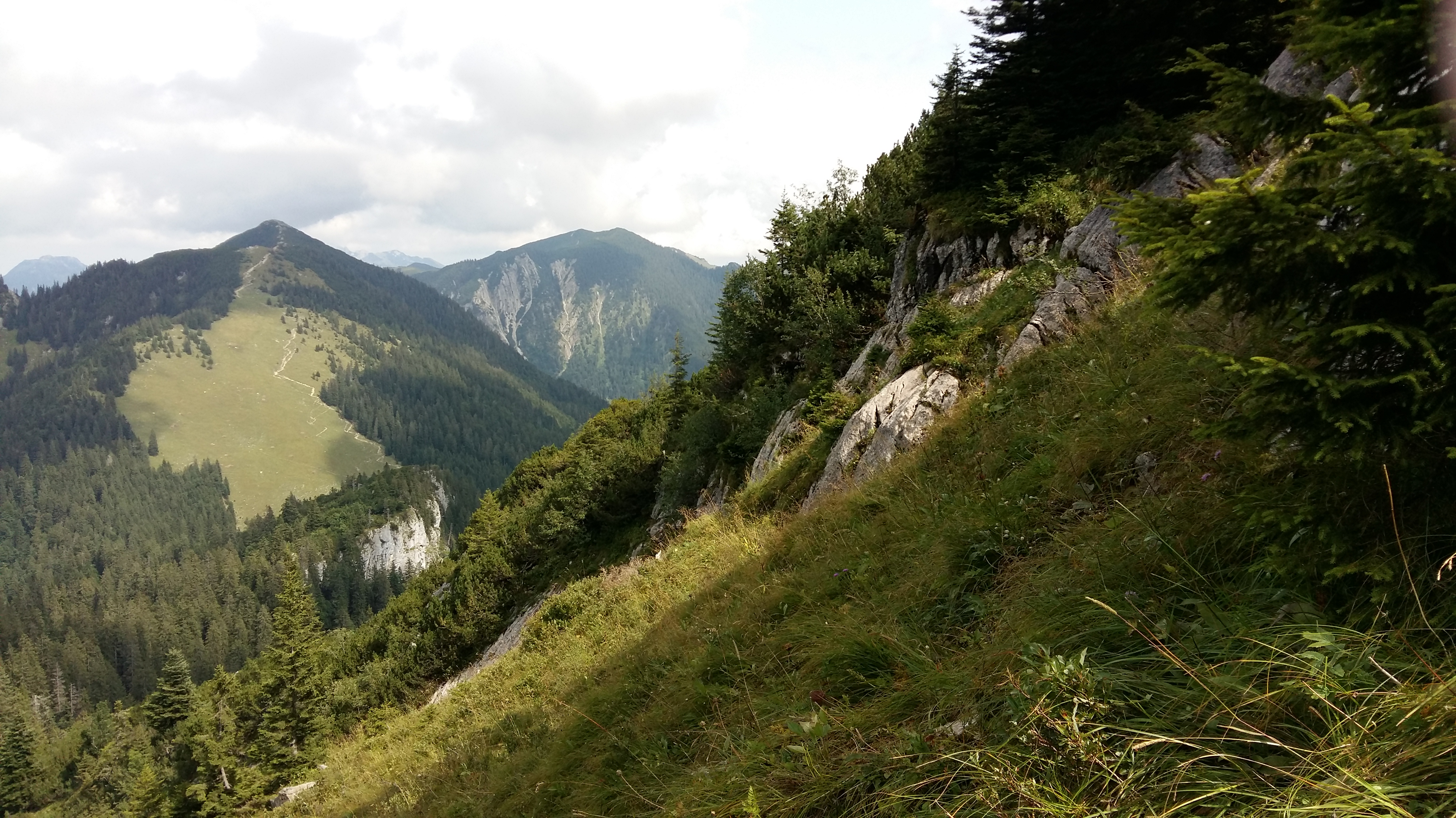 Onward towards Tegernsee (left). More forest, but also exposed expanses of meadow with views (right). There are no grea