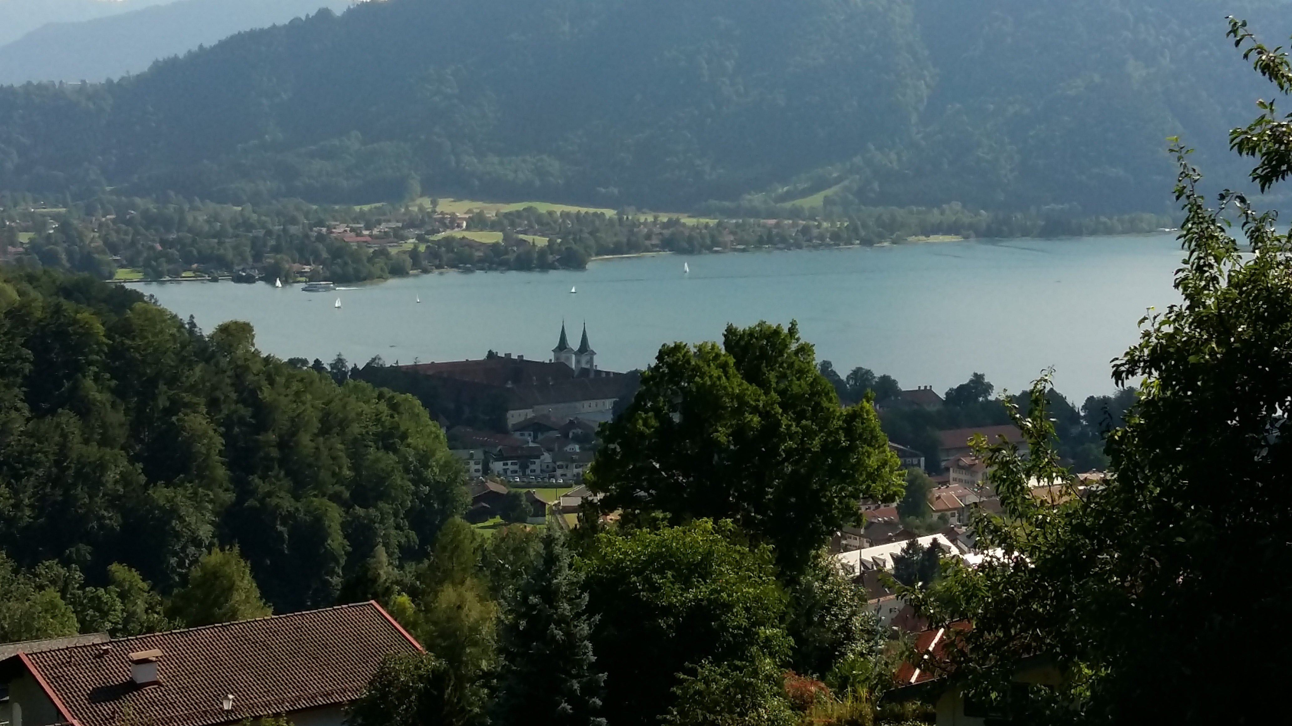 t surprises, but the approach to Tegernsee has one anticipating a beer at the town’s brewery which, seemingly, was the old monastery. It is an imposing building and can be seen from a distance (left) with its two towers and inner