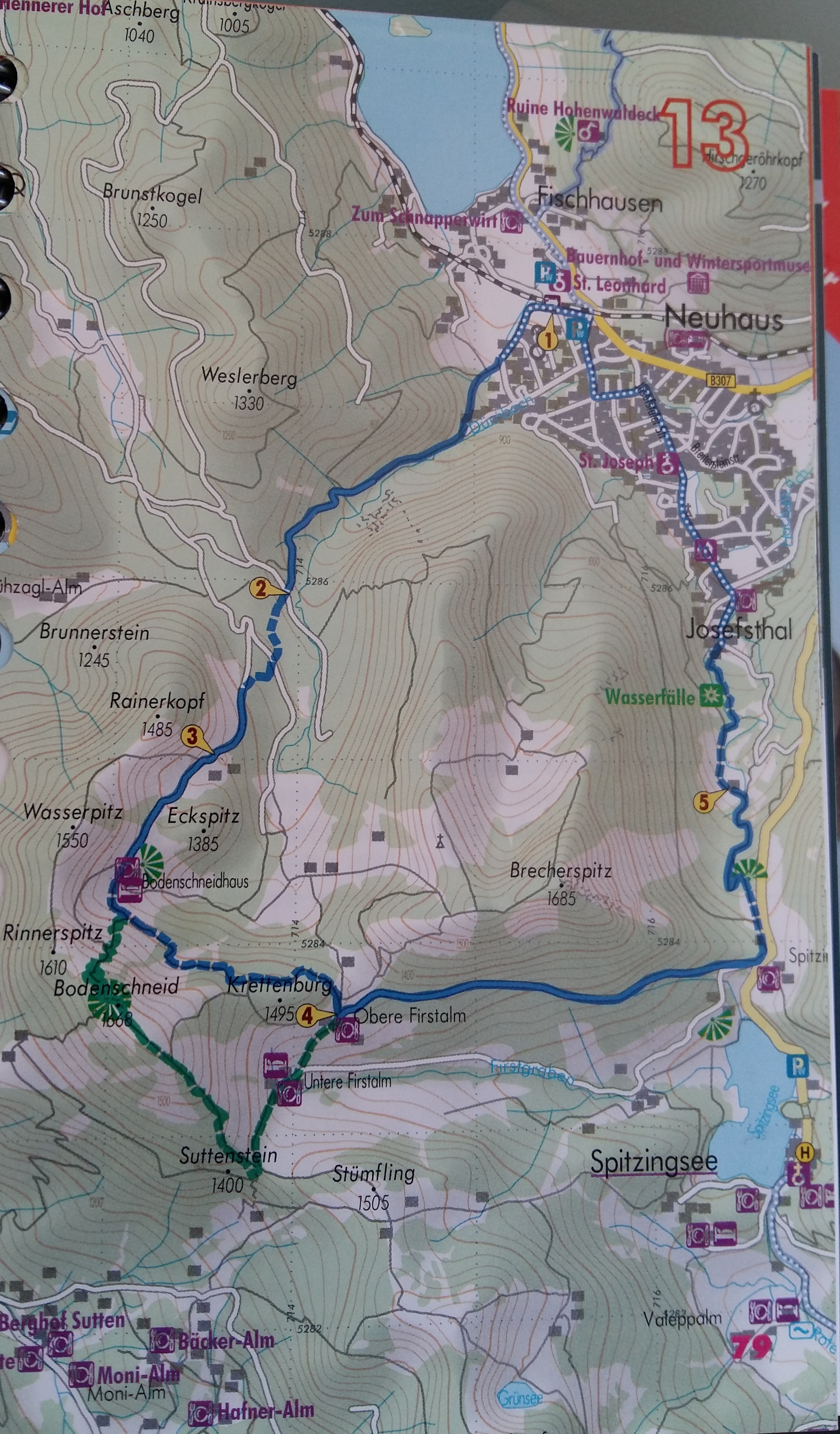We were planning something similar to what we did a couple of years’ ago – Danube, Altmühltal, Taubertal and Maintal. In the end, we decided to mix cycling and walking. From our base in Munich we are tackling a few Alpine climbs and cycle-route classics. First up for walking, a circular walk featuring a peak called Bodenschneid (1668m). We are using the Hikeline Wanderführer (autho