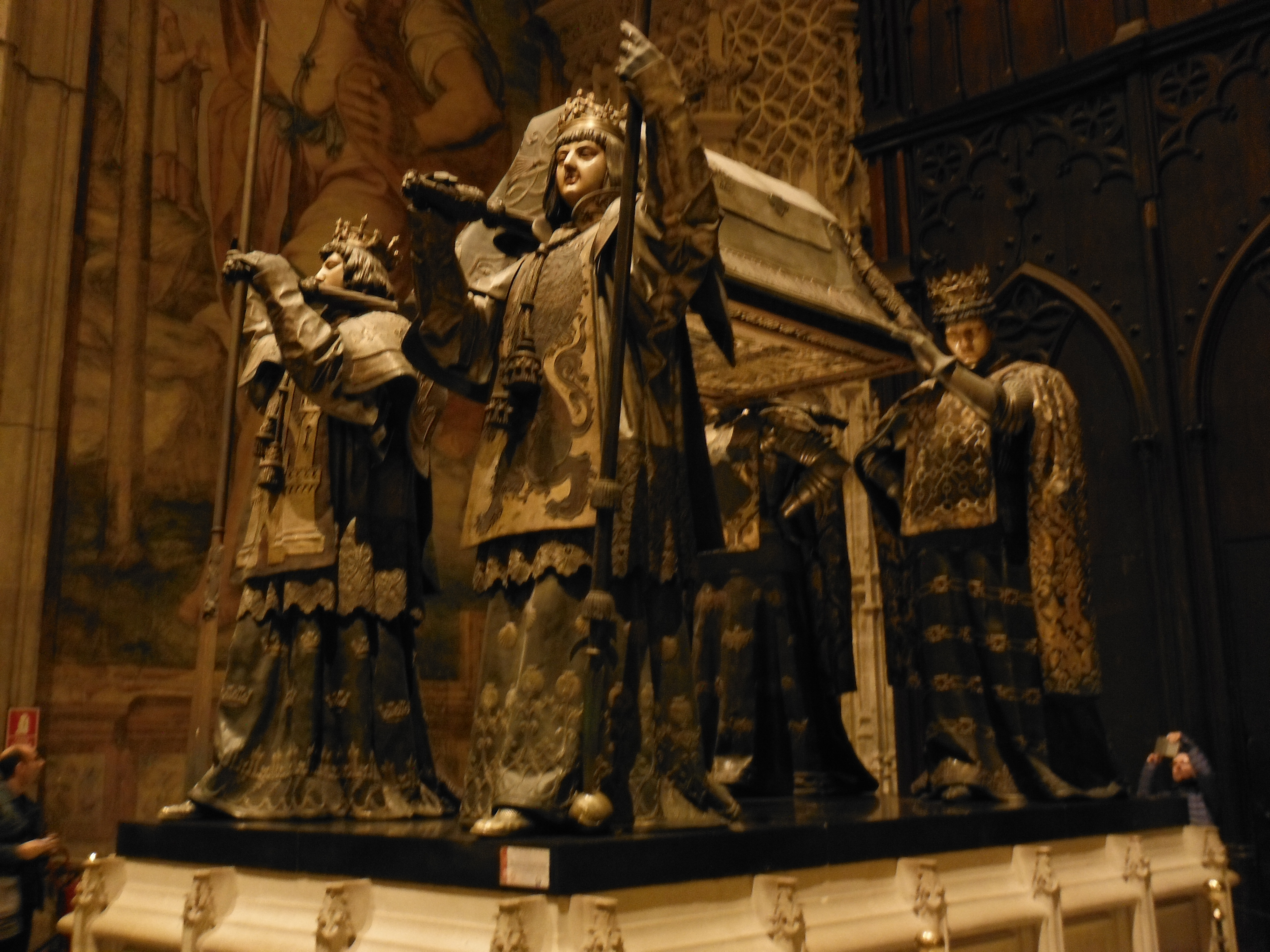 Christopher Columbus is, naturally, a revered historical figure in Spain. His tomb (left) was originally in Cuba but repatriated to Seville at the time of the revolution. The sarcophagus is an imposing exhibit on the south east side. The coffin is held aloft by four figures representing the kingdoms of León, Castile, Aragón and Navarra. It’s a selfie paradise.