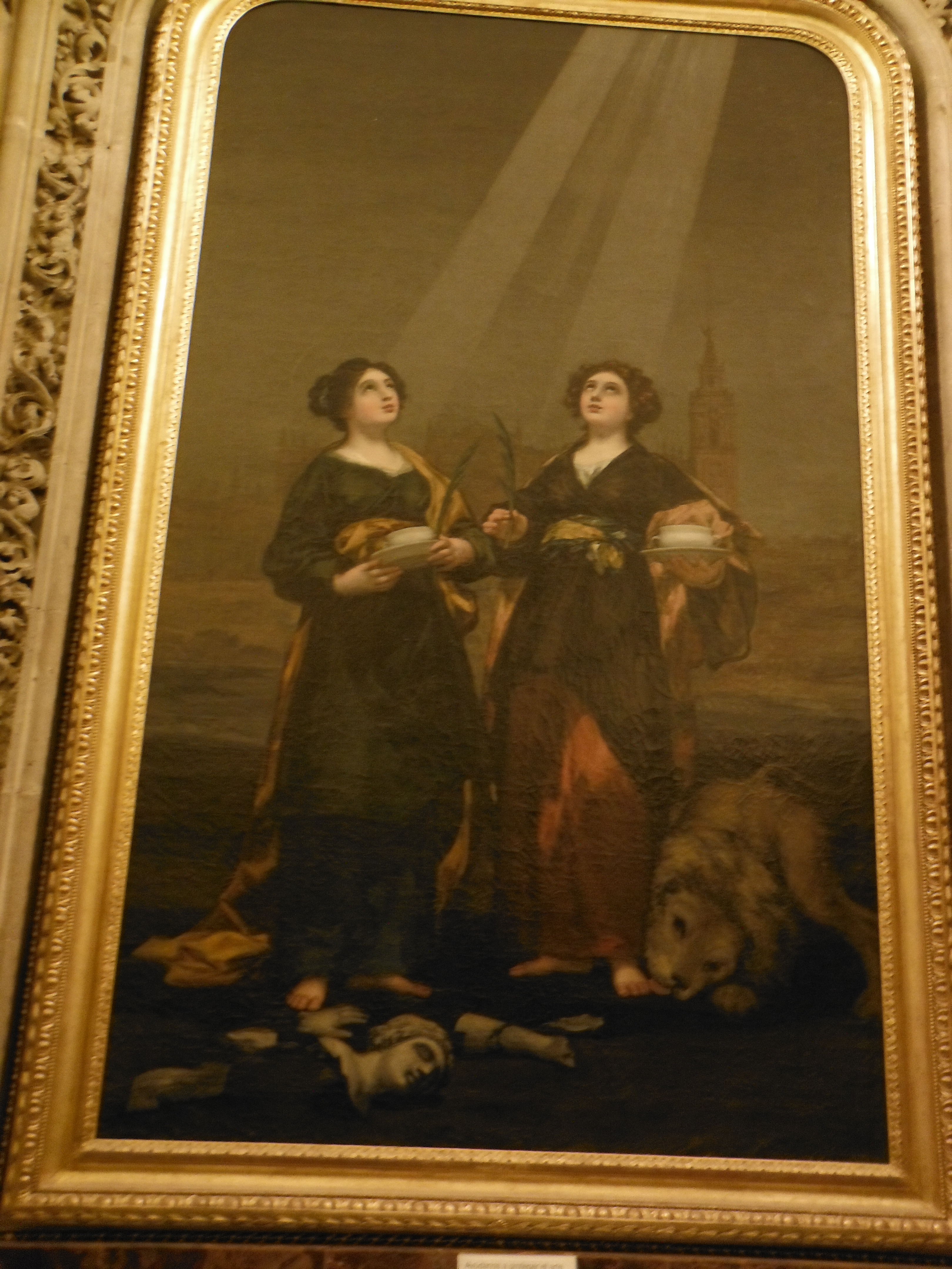 So, What to look for? Well, in many respects the cathedral is a museum and gallery (with each chapel acting as a themed room). There are some notable pictures – Goya‘s Santas Justa y Rufina (right) depicting the two pious sisters tortured by pagans for refusing to sell their earthenware pots at a Pagan celebration.
