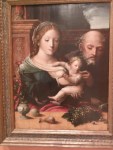 Maestro del Papagayo’s Holy Family (right) seems wholly mischievous. The child squeezes the nipple but is tempted by a grape! The symbolism is, I assume, fertility and the blood of Christ?