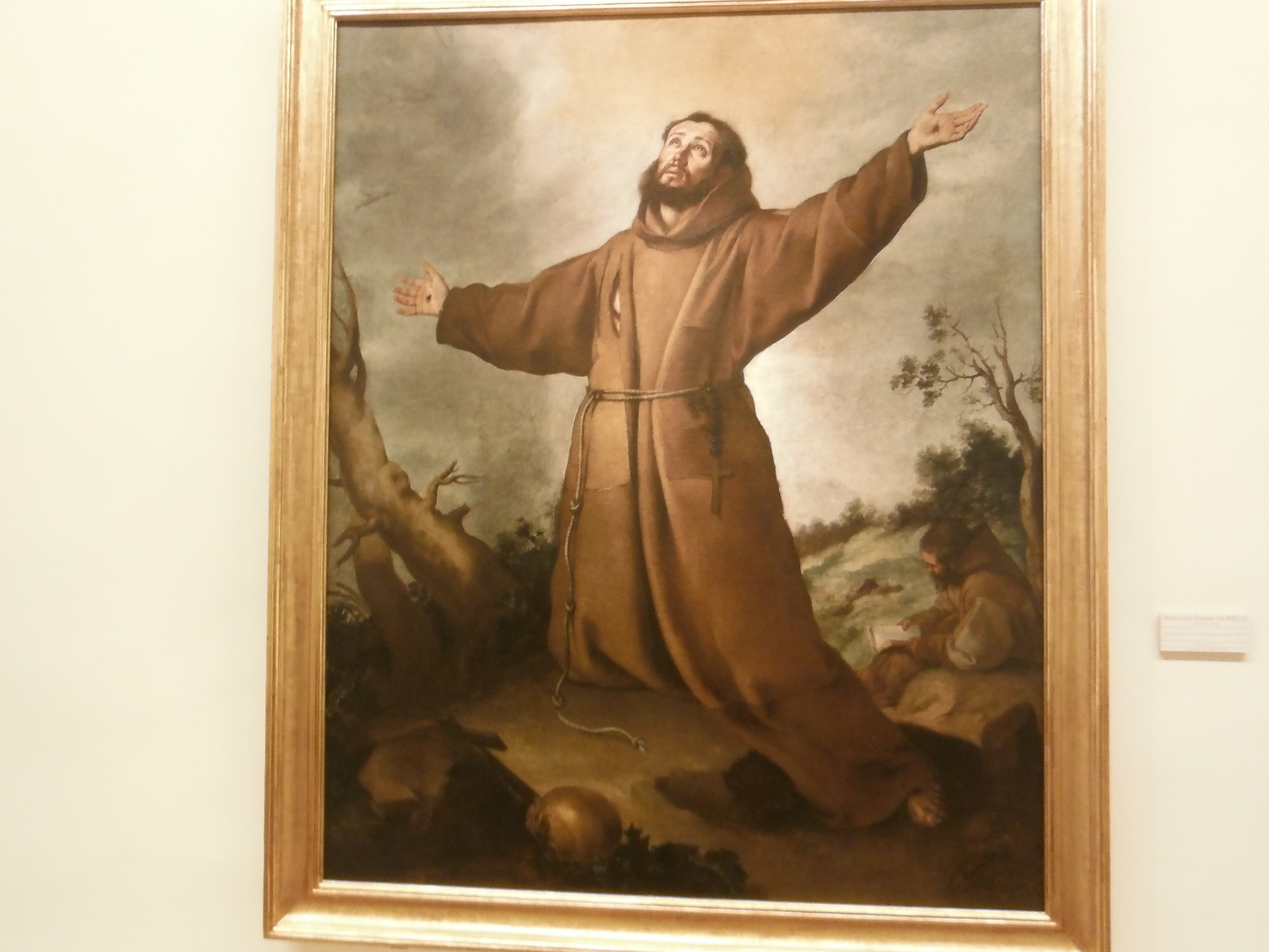 There is a lot of St Francis of Assissi going on in this gallery. For example, Bartolomé Esteban Murillo’s Stigmatisation of St Francis (left) dating from c1645. More of Murillo’s wonderful work was in a special gallery where no cameras were allowed.Another favourite son is Taller de Zurbarán. The gallery houses some rather large canvasses of saints; for example, St Anés with lamb (whom I know nothing about) and St Dorotea with fruit and flowers (both 1650, right). Dorotea was a legendary virgin martyr who may hav