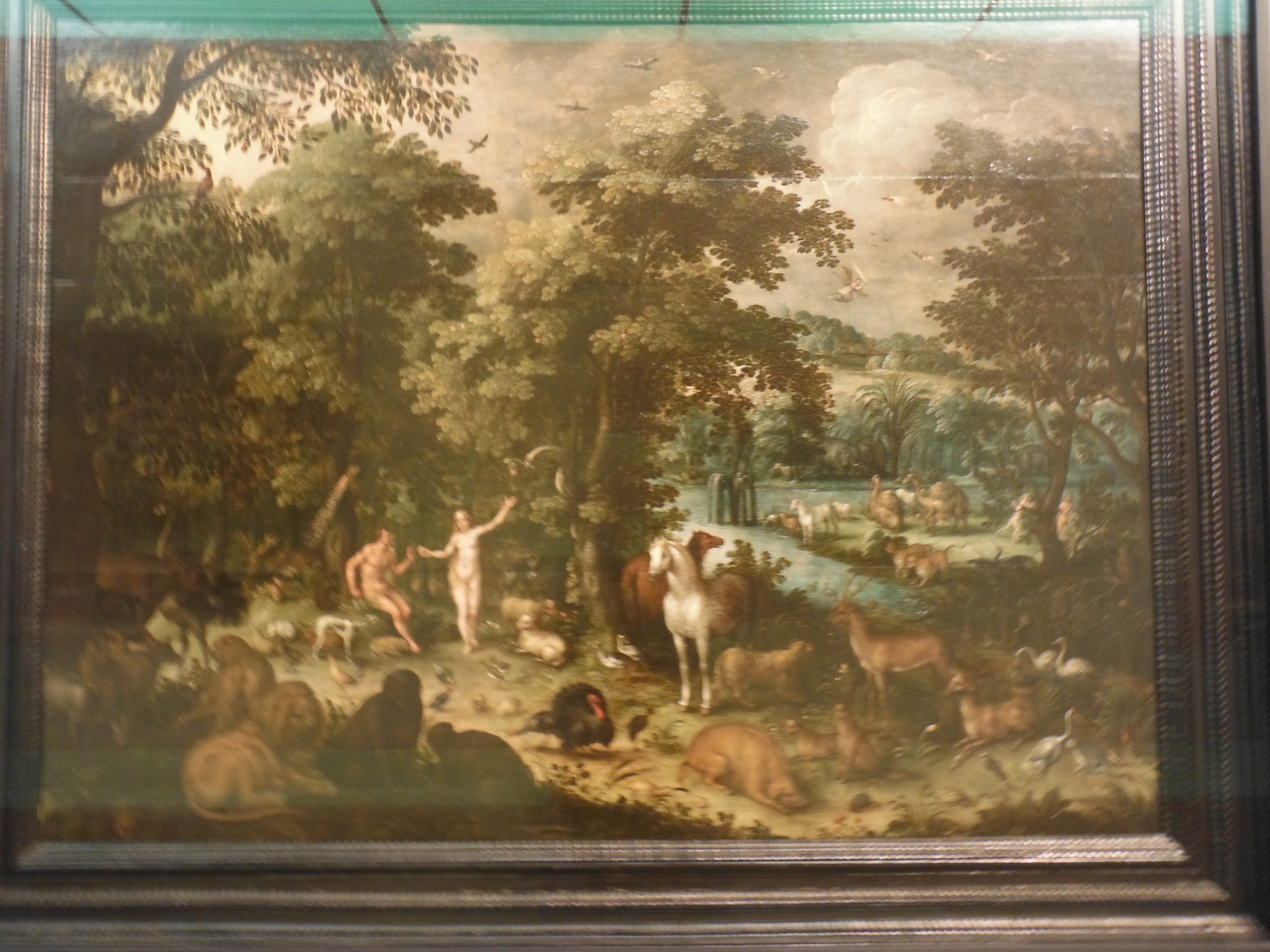 So, back to the Flemish artists, Jan Brueghel’s depiction of paradise with its paired animals, verdant backdrops and the odd naked Adam and Eve (right) delights in its detail and idealism.This being a local museum, quite a bit of space is given over to paintings of dubious value. There are something like 8 canvasses by Domingo Martínez charting the route of a allegorical carriage through Seville in 1747 (left). It seems reminiscent of those ma