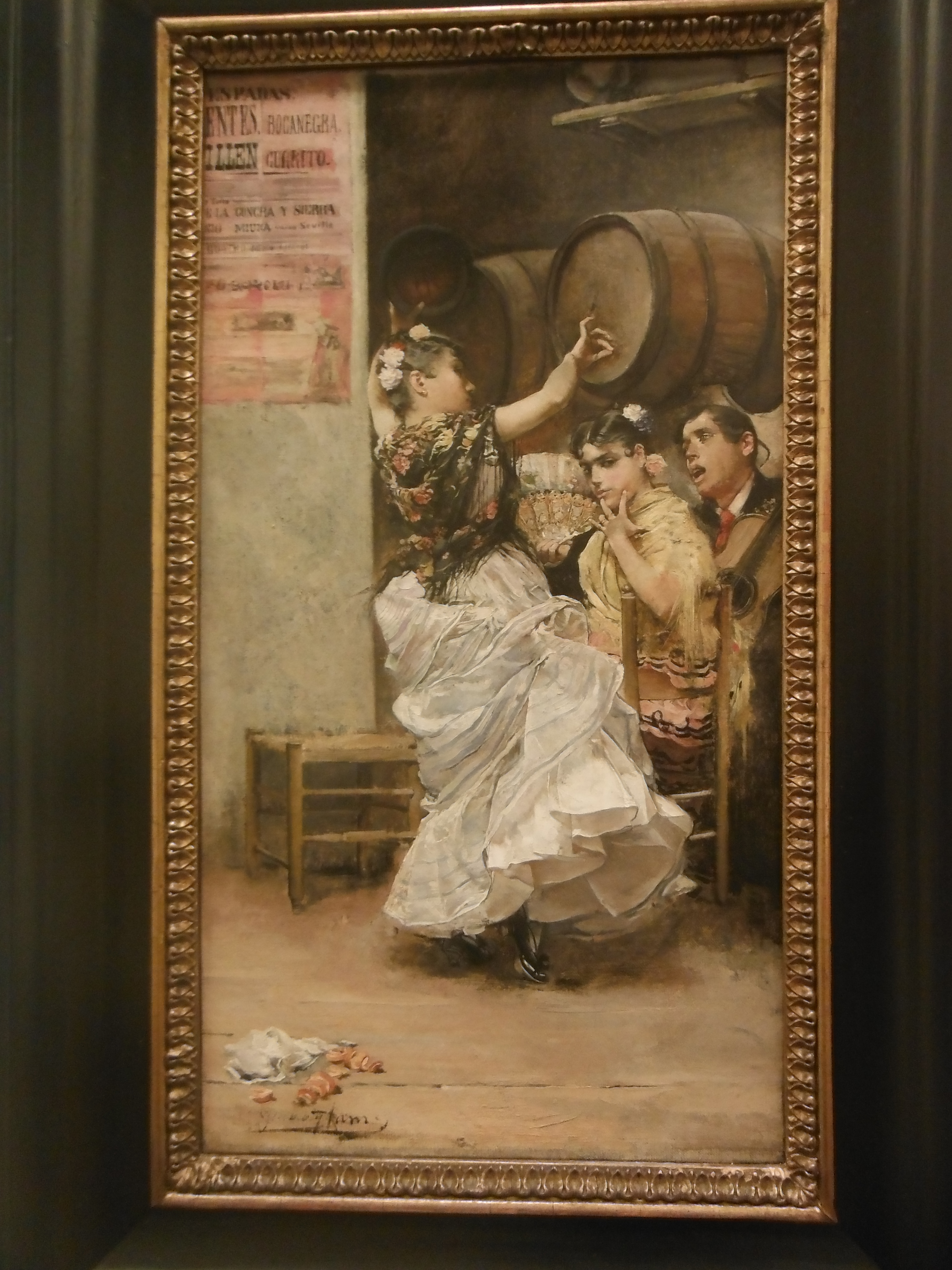 an’s Baile en la taberne (right) and José Garcia Ramos’s Baile por bulerias (left). These both strike me as capturing the spontaneity of flamenco in Sevillian society. All you need is a spanish guitar (and someone to play it) a frilly frock, some shoes and maybe a male partner. And knowledge and passion, for I have no doubt that it is a technical art. Whilst I find flamenco myself to be rather dull to watch, I do not doubt its importance to the culture. Also nothing dies, unlike with the bullfighting.
