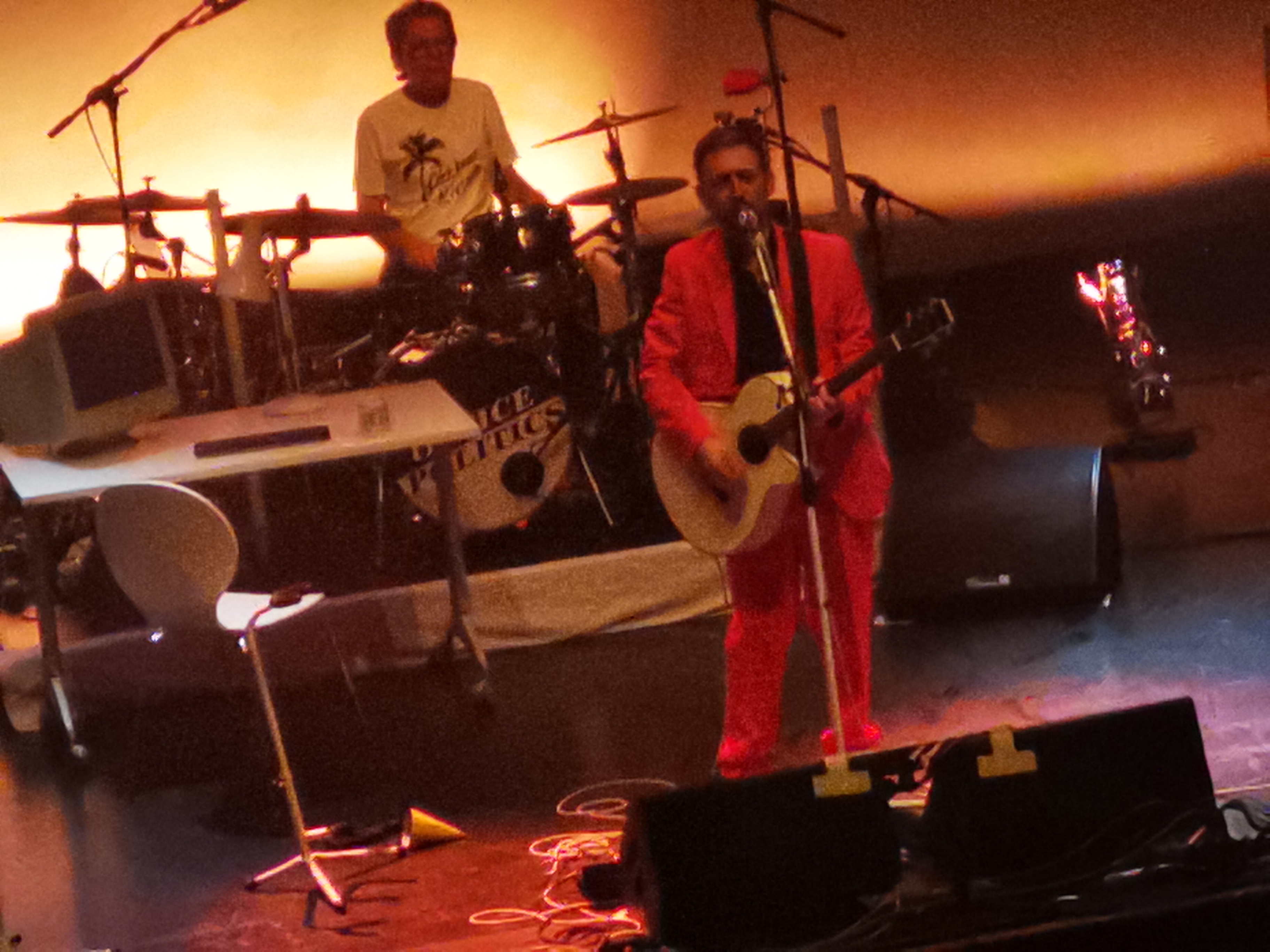 Hannon enters the stage from the in door to cheers. He is dressed in a bright red/orange suit (we know that on other dates he has a blue and white suit). In contrast to previous concerts we have seen, Hannon concentrates on the singing – only on a few occasions does he pick up his acoustic guitar.