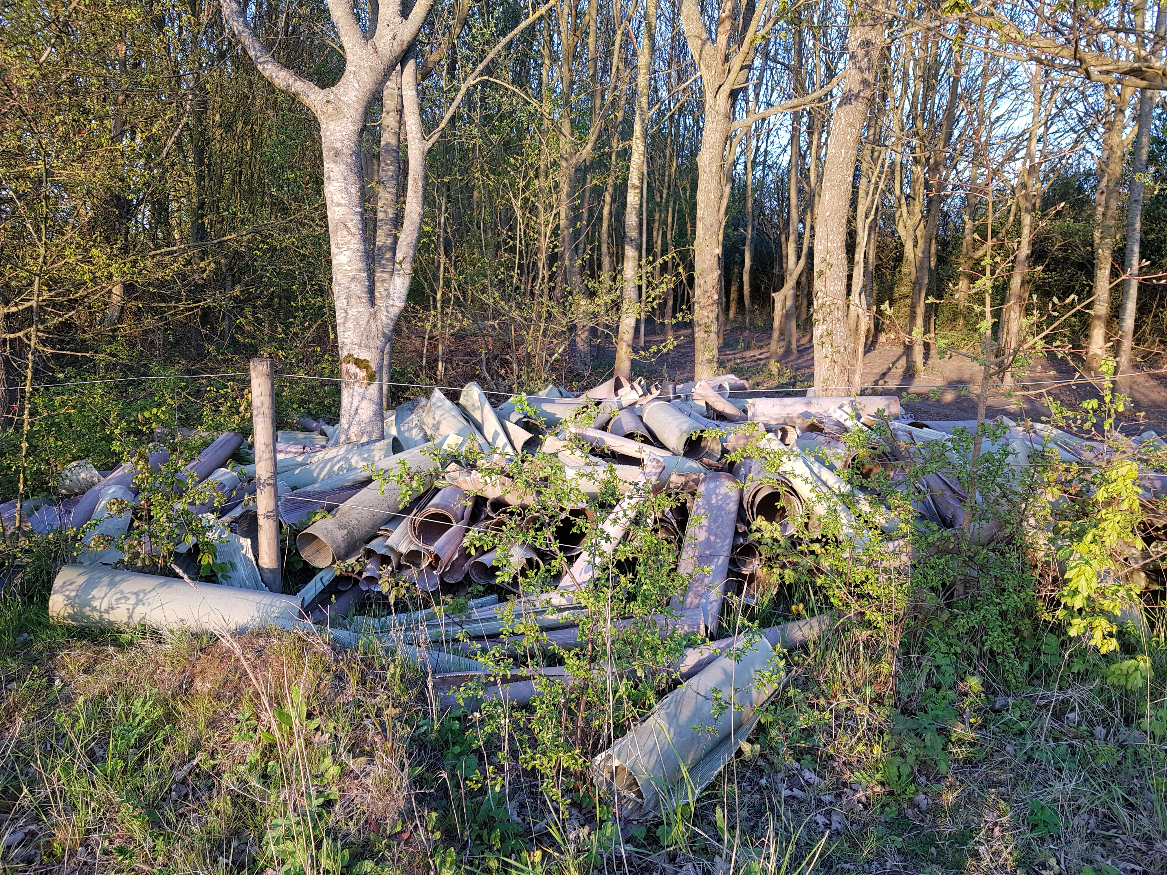 I’m now on the lookout for these protective tubes, not far from Combe Valley I did find a spot where they have clearly been removed from trees, but not removed from the landscape (left).