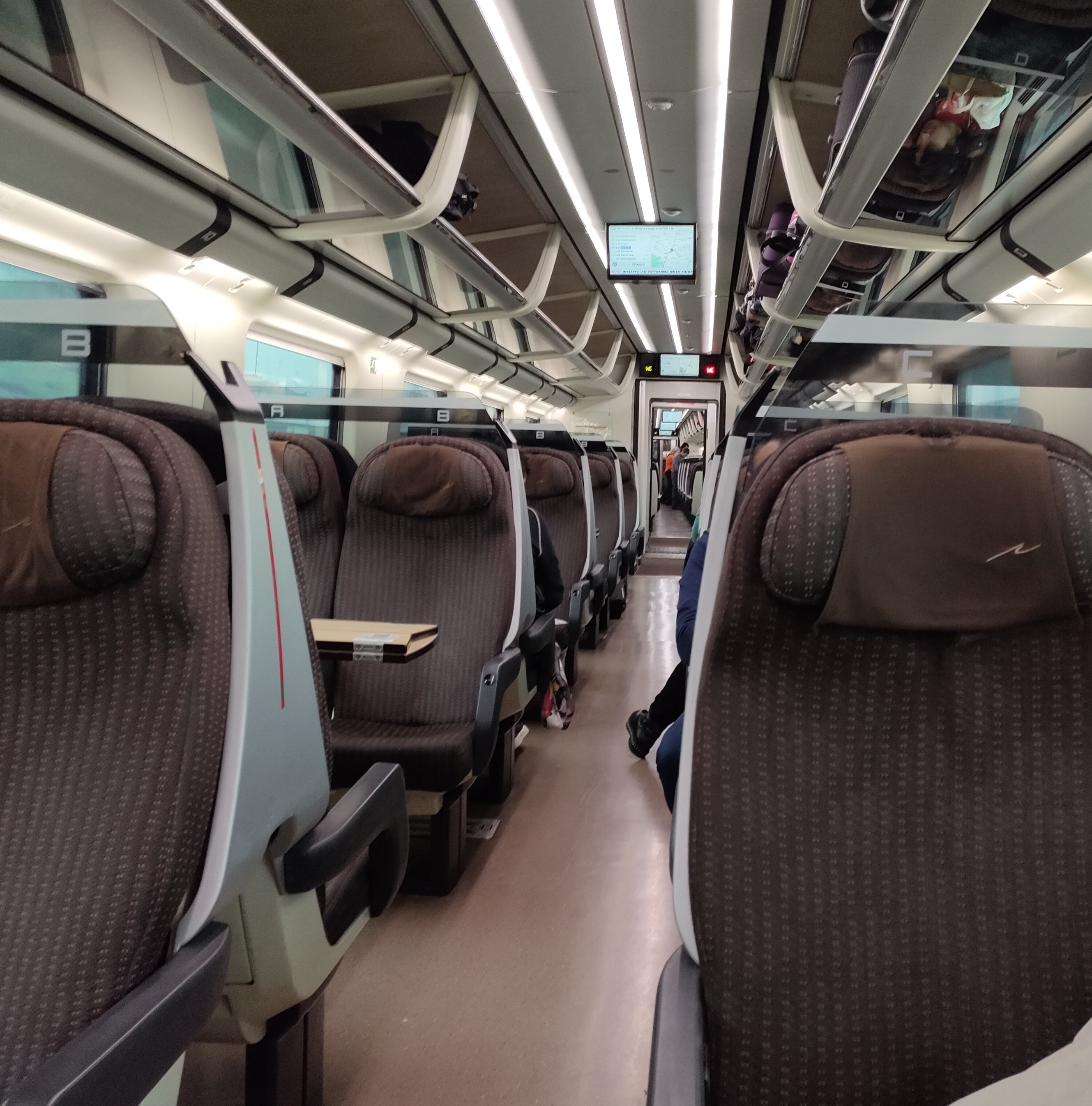 We travelled on 25 December Euro City Munich to Padua (end station, Venice) and then TrenItalia Frecciarossa (high speed, right) to Napoli via Rom. It is a good day to travel – busy but not too busy. A cafe was open in Padua station (above left). The coffee was timely and great! Total journey time around 12 hours. One hour changing time in Padua. A bit of a delay in Rom. Dodgy power sockets on train.