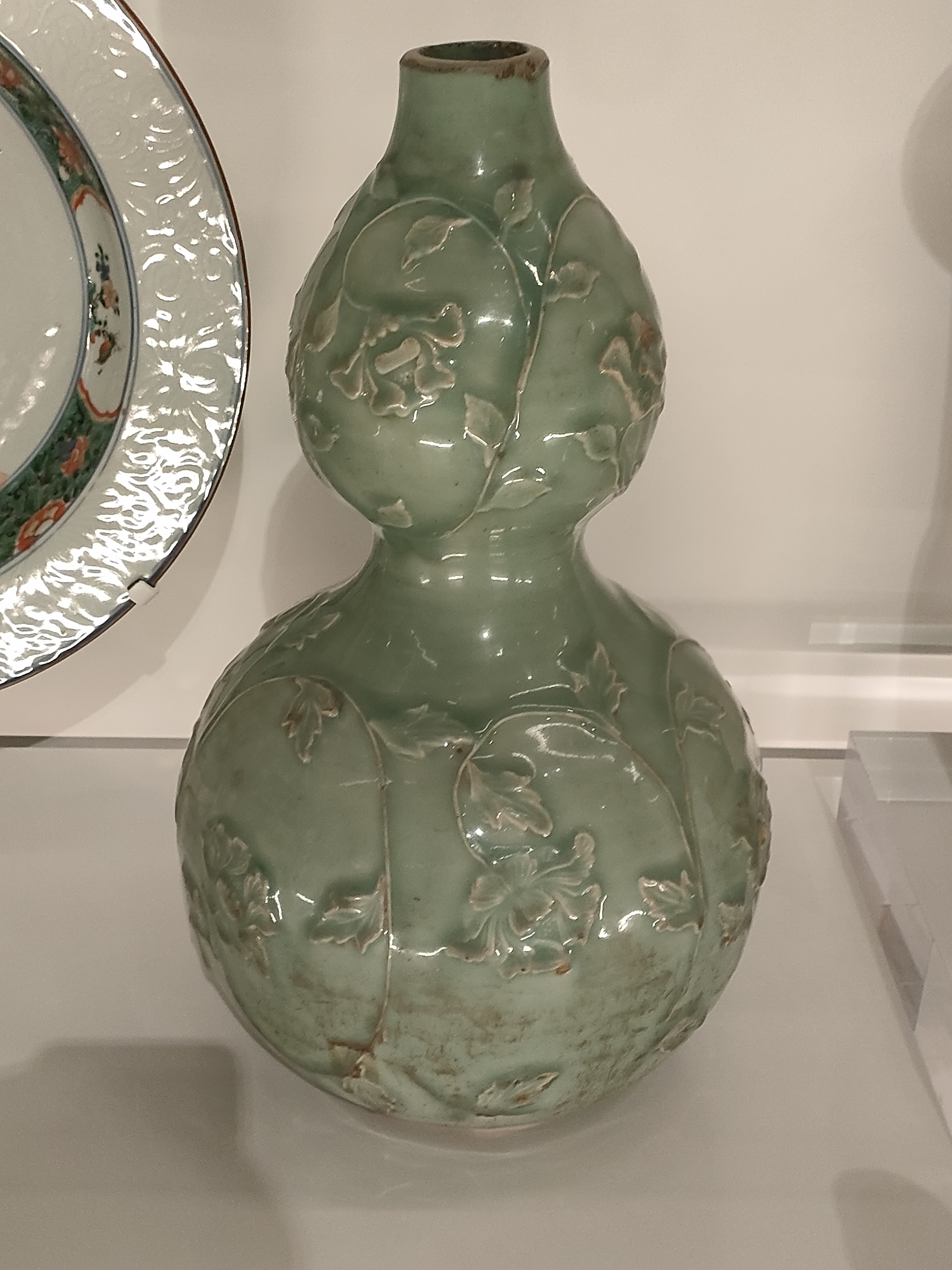 The museum’s permanent collection includes some fabulous ceramics, some of which are nearly 400 years’ old from China – at the time when the porcelain was a unique Chinese export. A first glance the pot (right) is rather dull, but the “double gourd” has a form that is one of the most ancient of Chinese ceramic shapes (undated, unfortunately). The colour jade was seemingly extremely difficult to achieve!
