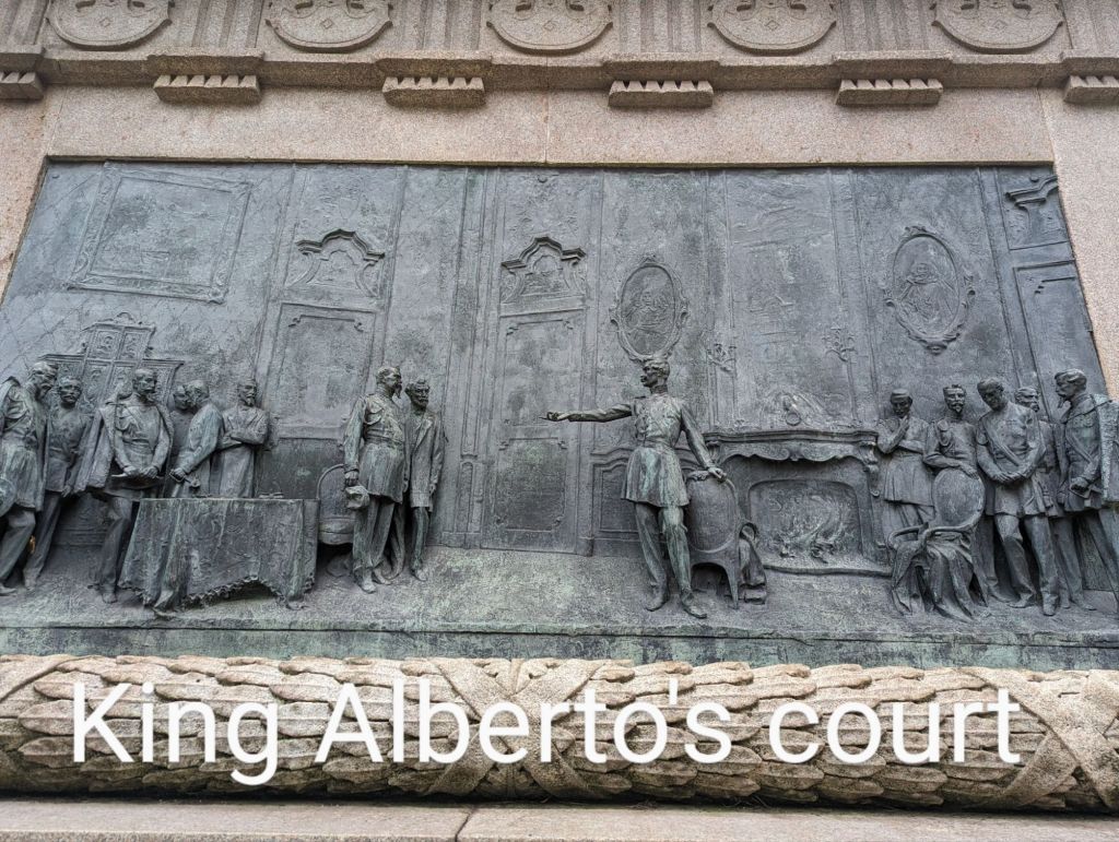 A little along from there is an unassuming garden (Villa Carlo Alberto al Quirinale). There is a monster statue of King Carlo on his horse, but the sculptures on the plinth are really interesting (right). It is the court of Carlo and, of course, it is exclusively men. If one looks carefully, the women are depicted only as pictures on the wall! On the other side is a lot of men dying in battle. There is a lot of that in Rome. Men dying in battle.