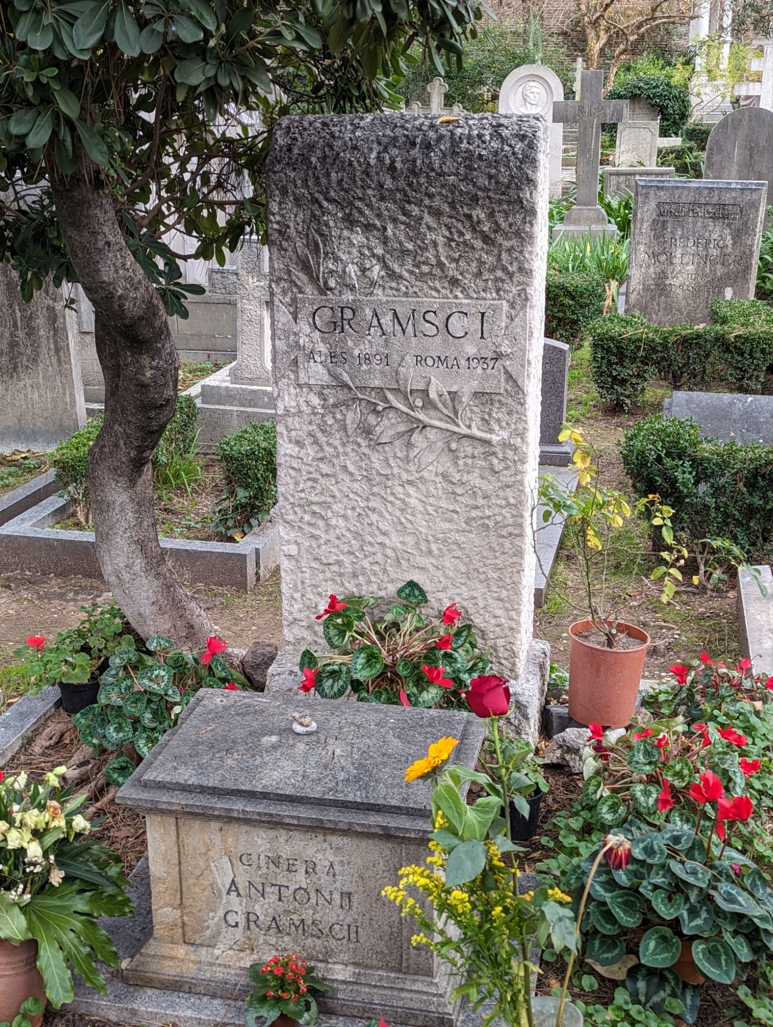 In the nearby “English” cemetery (Cemitero Acattolico – accessible from Pyramide Metro station) lies one of Mussolini’s greatest critics, and paid the ultimate price for it. Antonio Gramsci resided on the absolute opposite of Mussolini’s vision. Mussolini imprisoned him. And it was in prison where he died after 13 years’ incarceration. But those years were spent writing his so-called notebooks. I read a lot of Gramsci when I was a student of politics (my first degree) and to find his grave was extraordinary. No plan here, but it is what comes from random conversations with unexpected café owners in Mussolini’s new city.