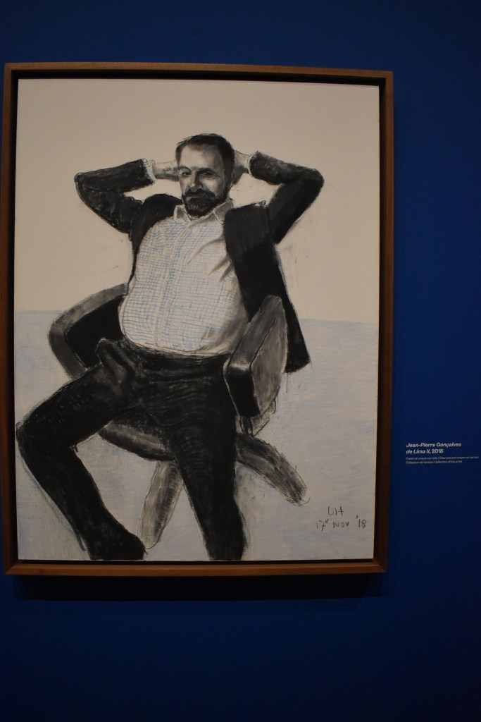 I like to think that artists have something to say (about the world) beyond themselves. Maybe the next gallery of portraits might reveal something, after all, the sitters were others, often pairs of others. There were lots of admirers of these portraits, but I felt that most lacked emotion. In fact, the only picture (actually a set of four) that showed emotion were a man towards his dog. All others seemed inert. I found one image that summed up this whole gallery (below right).