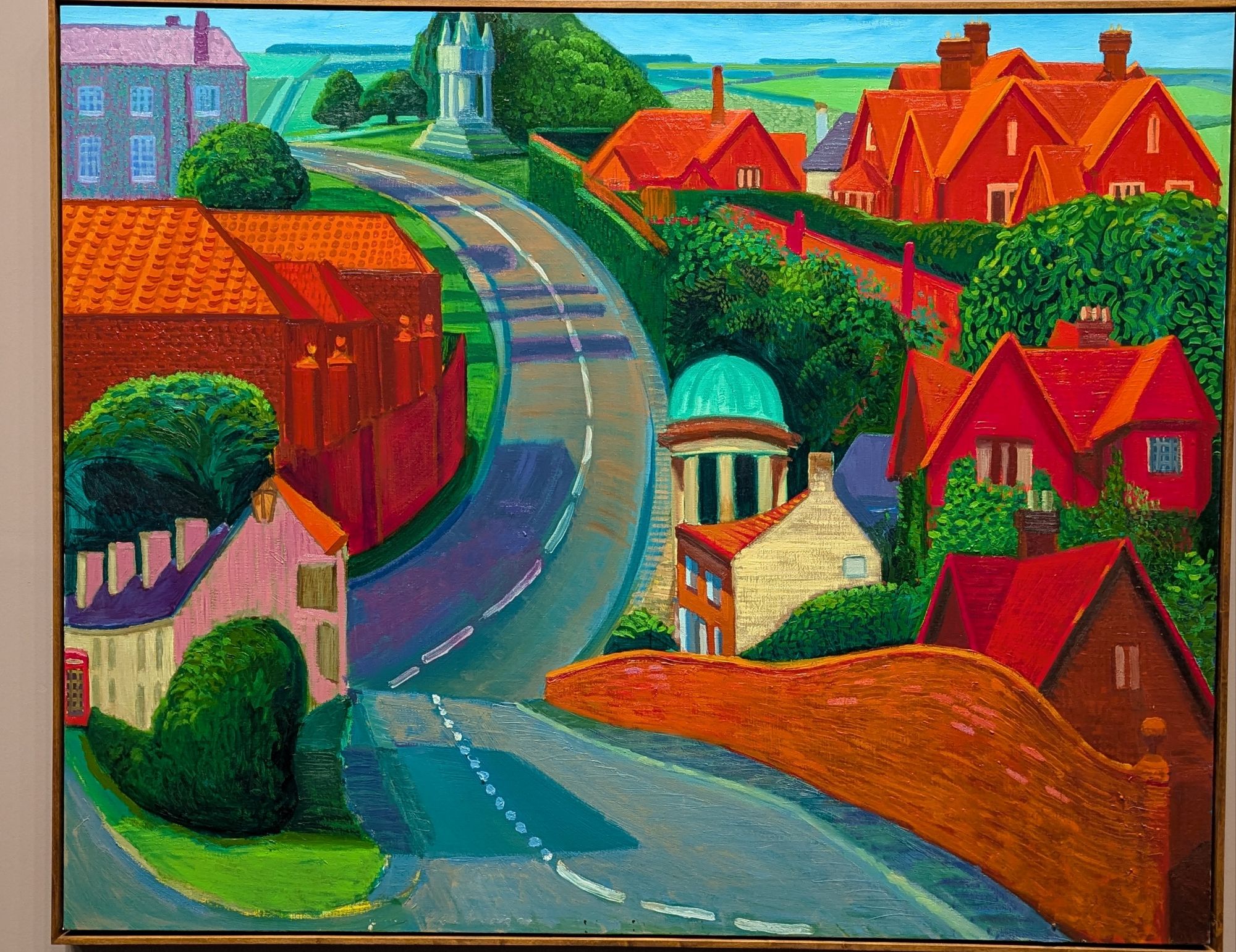 Onwards – Hockney came back to the UK and moved into his deceased grandmother’s house in Bridlington, Yorkshire. In this period he produced a significant number of landscapes depicting changing seasons; for example, a spot on a farm track. Man, easel, paints, brushes. Some of the pictures are huge, made up of 40 or so panels that oddly do not quite match or line up with one another. And they all seem to be without people or, indeed, animals. I can cope without people in the countryside. But not an absence of animals.