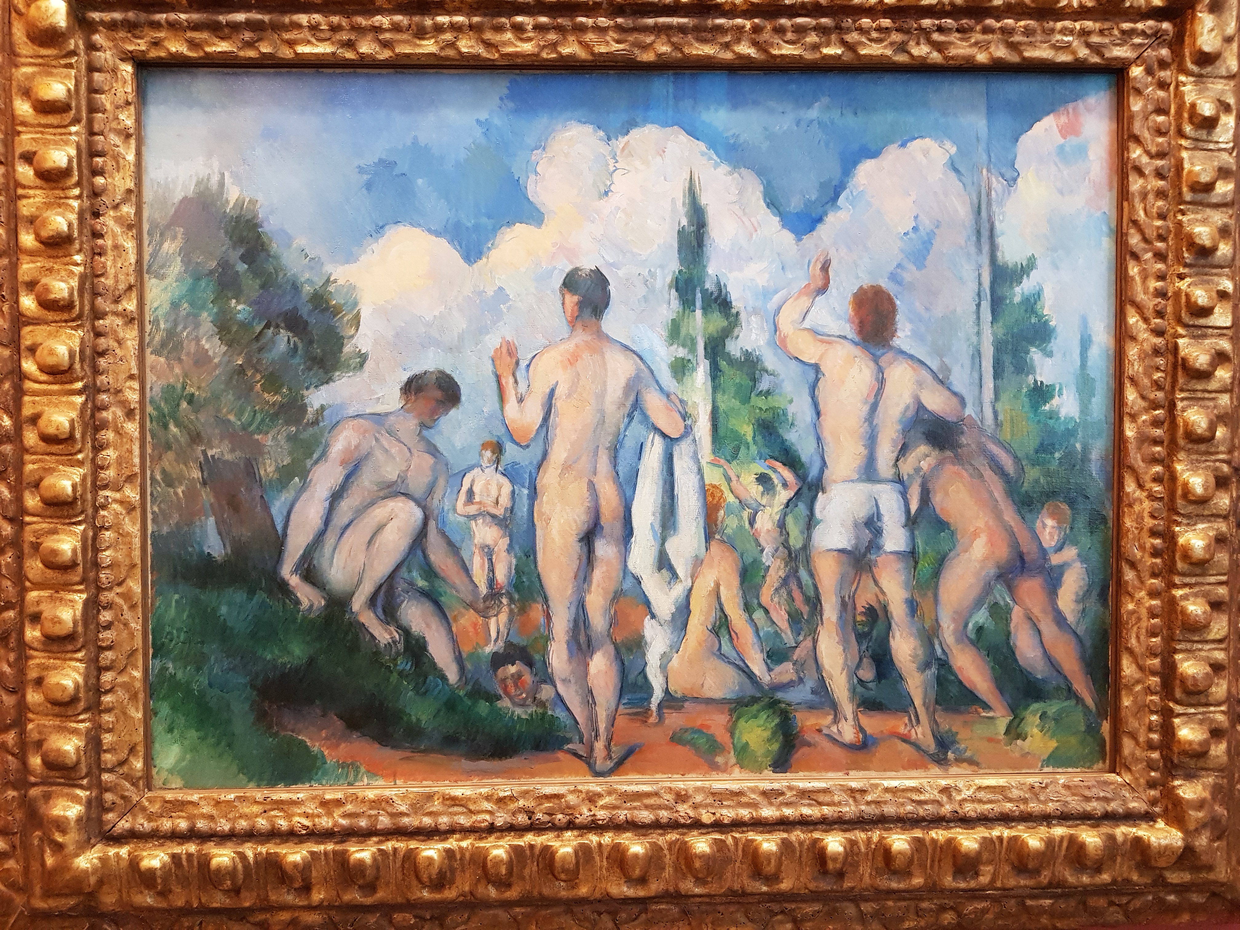e are some pictures that quite simply do not belong in this part of the collection. There’s a Turner, for goodness sake (another attempt at juxtaposition). There is also Bathers by Paul Cezanne (1890, left).