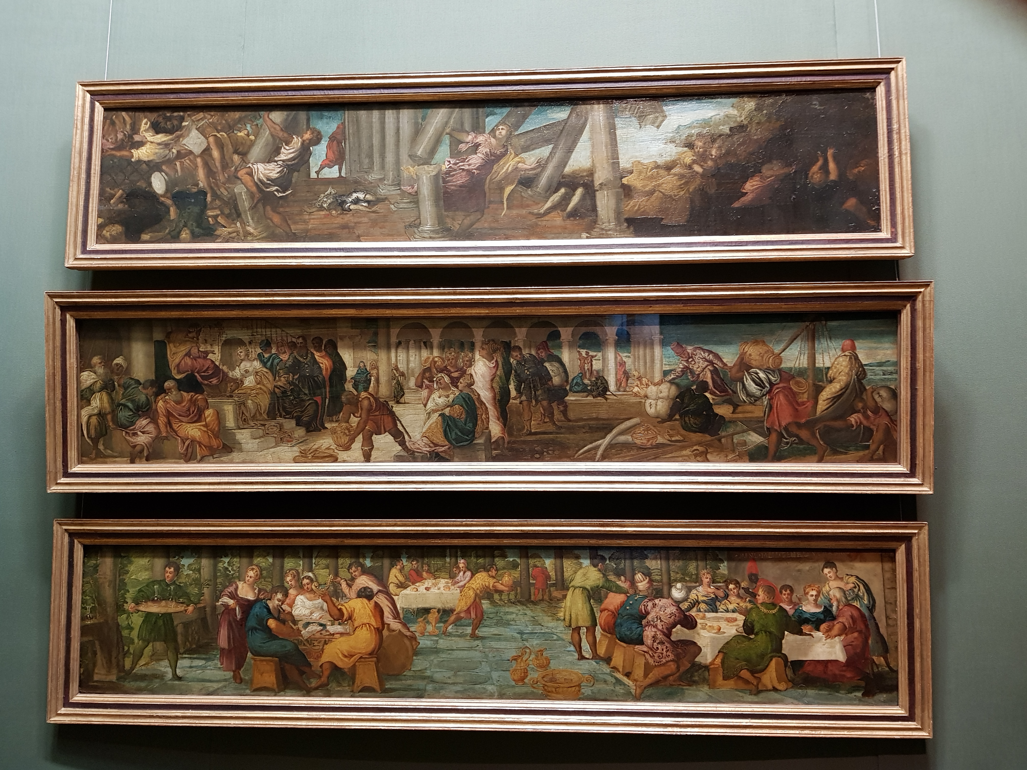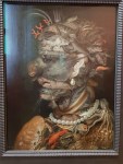 Tucked away in one of the small rooms off the main gallery is a series of four pictures about the seasons by Giuseppe Arcimboldo (1566). Each one has a profile portrait to make the point. The portraits are entirely made up of non-human components – for want of a better word – such as fruits and, here (left), fish. They are extraordinary pictures. Peculiarly unsettling.