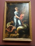 Another Graham-Dixon prompt is to look for Ghouls, particularly done by Germans. Now this one doesn’t quite qualify, but by goodness, that is one heck of a snake (Raphael in 1518) that St Margarete has to slay (left).
