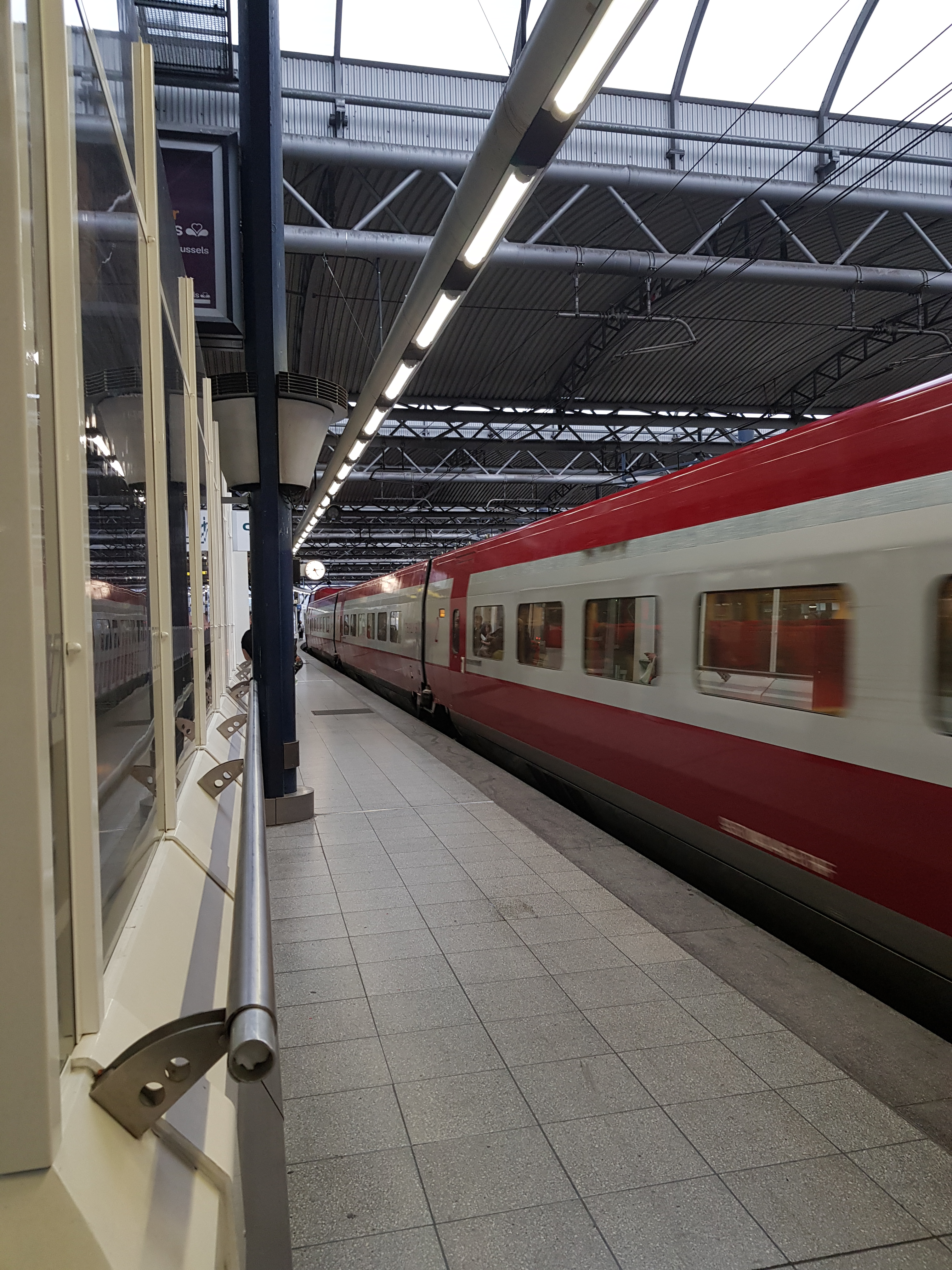 So, on 27 July 2019 I was heading to Munich from Hastings in the UK. That involved four different train operators: SouthEastern Trains, UK; Eurostar; Thalys; Deutsche Bahn (DB). The bookings had to be made through each individual train operator. Using ticketing agents makes it more expensive. They do not optimise on price. When booking one has to ensure changing time between trains and some delay wiggle room. For example, the Eurostar was 25 minutes delayed leaving London and accumulated further delays en-route; for example, waiting to enter the Channel Tunnel. I’d allowed myself 75 minutes changing time at Brussels Midi (left). About right for the middle of summer when it is really busy.