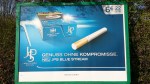 It is the summer of cool in the world of cigarette advertising in Germany. JPS has got this Blue Stream nonsense. Blue in cigarette packaging is usually menthol, i.e shite. So it looks like they are trying to market a rubbish cigarette type as taste without compromise (presumably this blue stuff usually entails compromise on taste). So, there’s this new filter, a rounded taste, whatever a rounded taste is, and less smoke