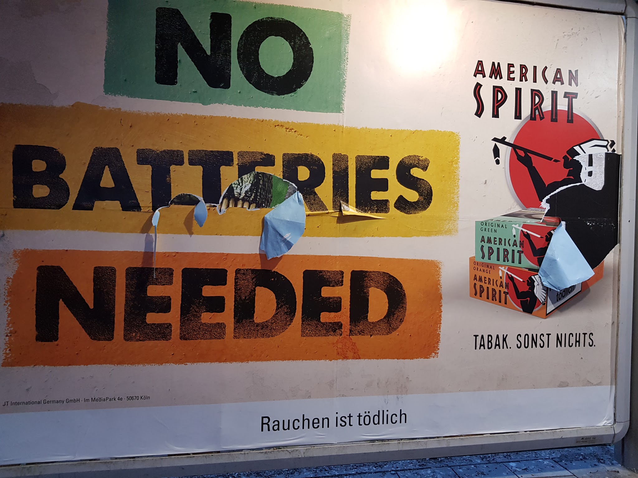 Anyway, not only are batteries not needed, but users get American Spirit. New to me. Looking forward to more genius straplines from this brand and its marketers. And here’s me thinking the Germans were in hock to Russia!