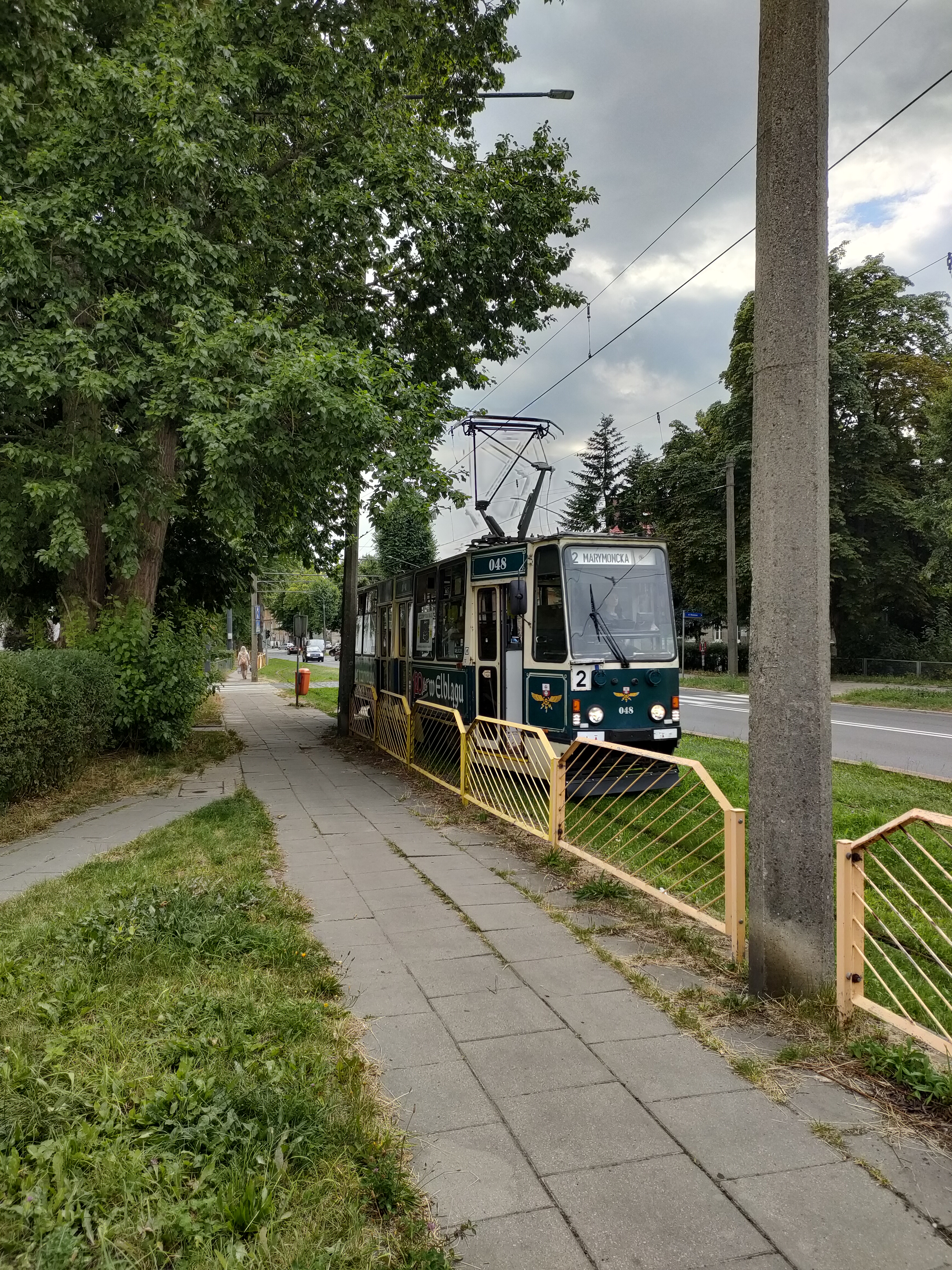 Most of the cities that we have visited have street trams. Elbląg, not a huge place, has a complex network of trams. Some of them are dated – rustbuckets, even (left). They run – in certain parts of the city over beautifully grassed avenues. They are a delight (we did not ride the trams, but they sat with me as characterful as the art – see blog entry 2).
