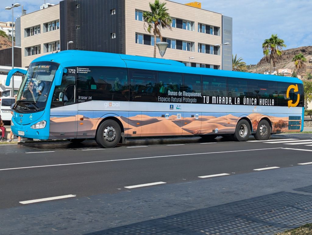 Of course there are no trains on Gran Canaria. There seemingly once was a plan to build a tramway south along the coast from Las Palmas to Maspalomas (reminiscent of the tramway in Belgium between De Panne and Ostend), but there is insufficient money to invest. That said, the island boasts an extraordinary bus service. Las Palmas has its own yellow bus network, the rest of the island has the benefit of Globalbus services. The buses are largely single deck, 3 axel vehicles, a combination of Volvo, MAN, IVECO and Scania chassis (right). Their frequency is excellent – though the real-time information at bus shelters leaves a lot to be desired. Buses can be 5 minutes away for 15 minutes, never actually getting any closer. I’m not sure if I am confident about the published timetable either. From where we stayed in St Augustin east and west, there were plenty of buses during the day. Fewer in the evening (the last bus back from Las Palmas is currently 2115, which is a bit early if we had wanted to attend an evening football match or a concert). Plus, if one arrived at 2115 it would already have departed. Pretty sure about this by experience.